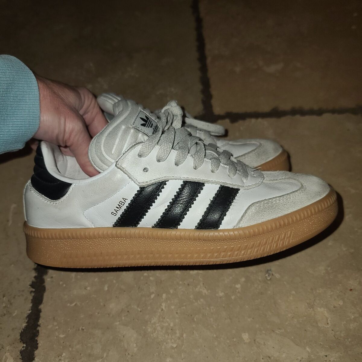 My daughter insisted on having these shoes, then wore them for one month. They were $100+tax new. Structurly they are like new but the white could be cleaned up.