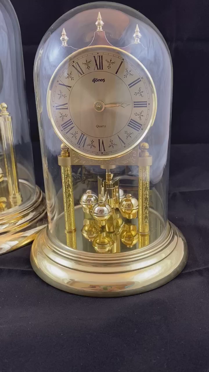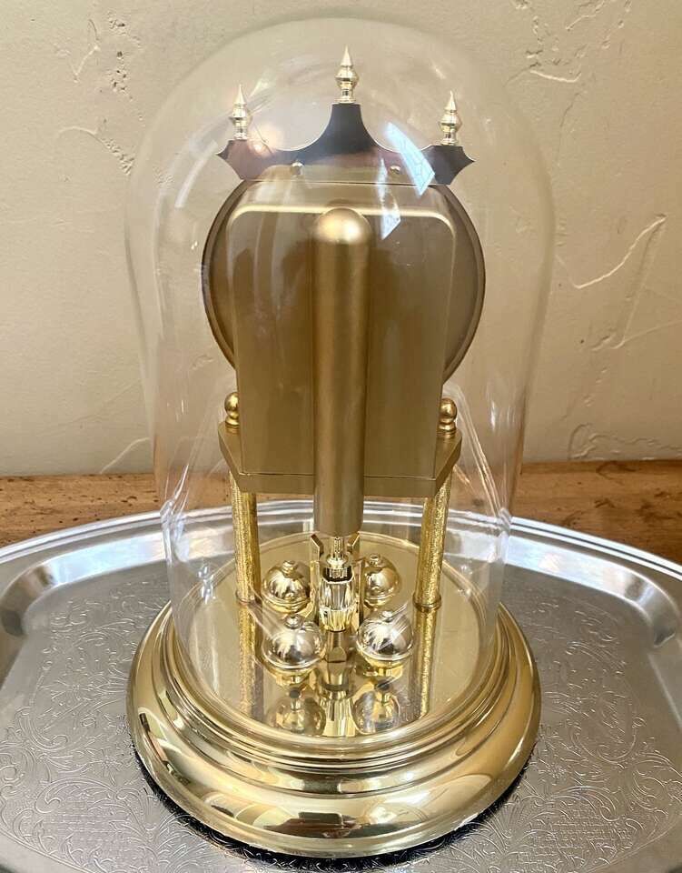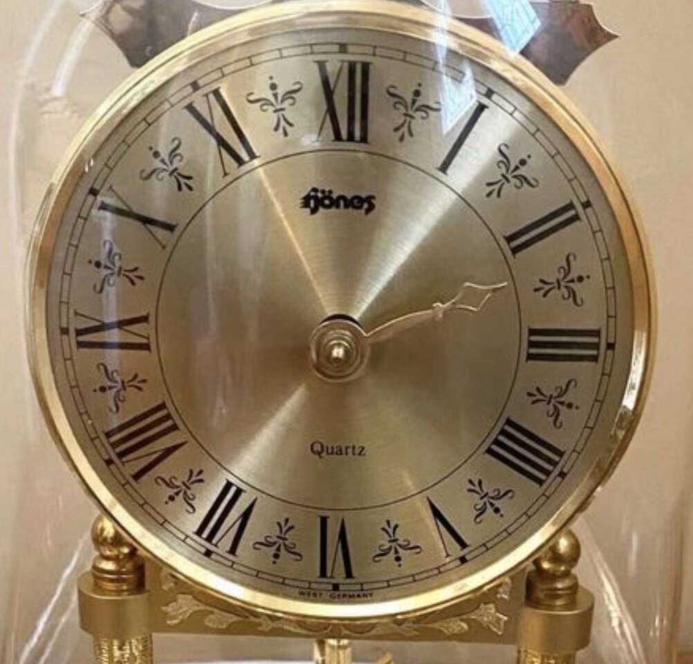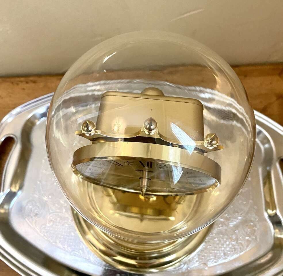 Beautiful 8.5 Inch Anniversary Dome Clock - Works But Needs New Clock Hands - W Germany- See Photos. Some might want to part it out and the dome alone is $35. I now have a video I can send you to show it working. The last photo has a close up of the face and you can see the hour hand. The replacement hands can be purchased from a craft or hobby store.