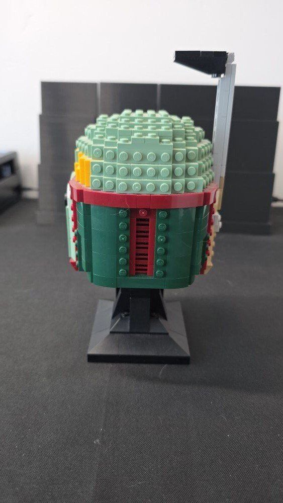 Set 75277: Boba Fett Helmet. Item is fully built, and has been on display for a while. Would recommend cleaning it. No box, instructions or spare parts. Price-$35