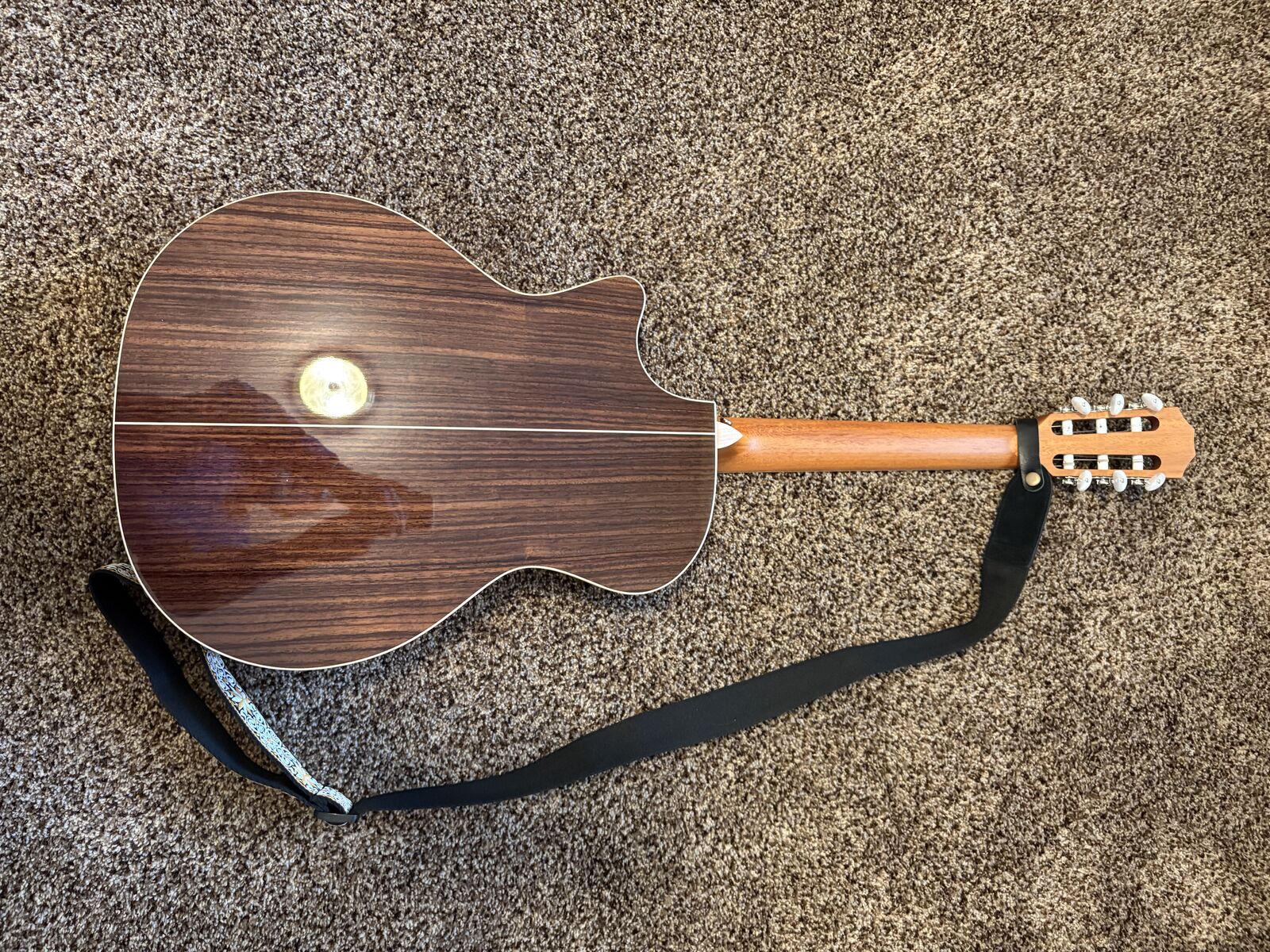 Right Hand Guitar Hard Case Included Nylon String Classical Acoustic Electric Grand Auditorium Body ES-N Electronics Sitka Spruce Top Indian Rosewood Back Mahogany Neck Ebony Fingerboard Binding Pale Maple Venetian Cutaway Gloss Finish Tropical Mahogany Neck Ebony Fingerboard 20 Frets Scale Length is 25.5 inches The guitar is like new. I lost both of my band buddies right after I purchased the guitar, so it has only been played a few times. I will also include a guitar stand and a guitar strap. Cash Only