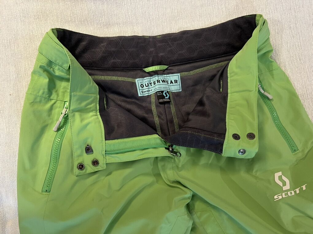 VenmoLime green Scott insulated ladies’ waterproof breathable pant. Zippered vents. Moderately used. Fits like US size 8. Sits below the navel when worn. Actual measurements: Waist: 26”-33” (adjustable) Hips: up to 42” Inseam: 30”