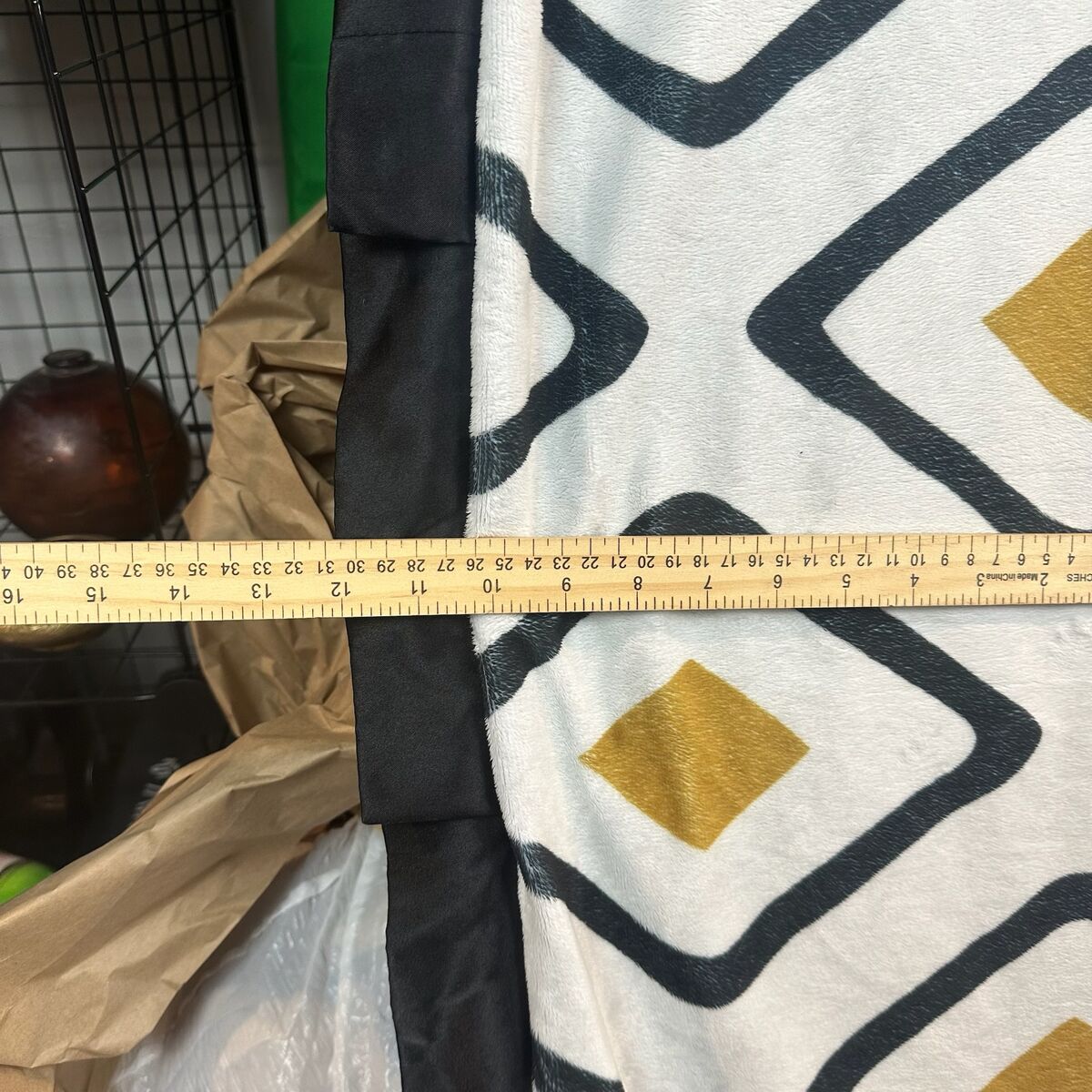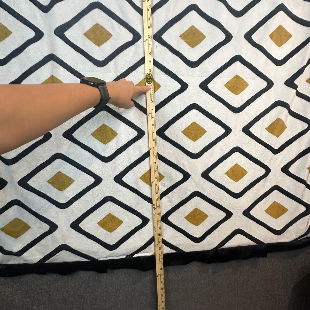 Keywords: Minky Couture blanket, plush blanket, geometric blanket, diamond pattern blanket, black and gold blanket, white blanket, luxury throw, cozy blanket, soft throw, home decor, bedroom decor, living room decor, warm blanket, oversized throw