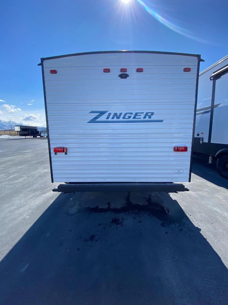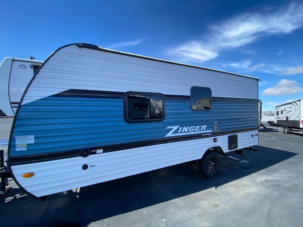 Join the CrossRoads family with a Zinger Lite travel trailer! You'll enjoy an abundance of standard features you would usually find with higher priced travel trailers. Each model features a Super Flex Alpha Roof and front diamond plate for added strength and durability. There is also an electric awning outdoors, along with pass-through storage, rear ladder prep, and a tankless on-demand water heater for added convenience. The interior features pleated shades/mini blinds/fabric window treatments, a 12V refrigerator, comfortable seating and seating spaces, plus plenty of storage for your personal belongings and camp gear!