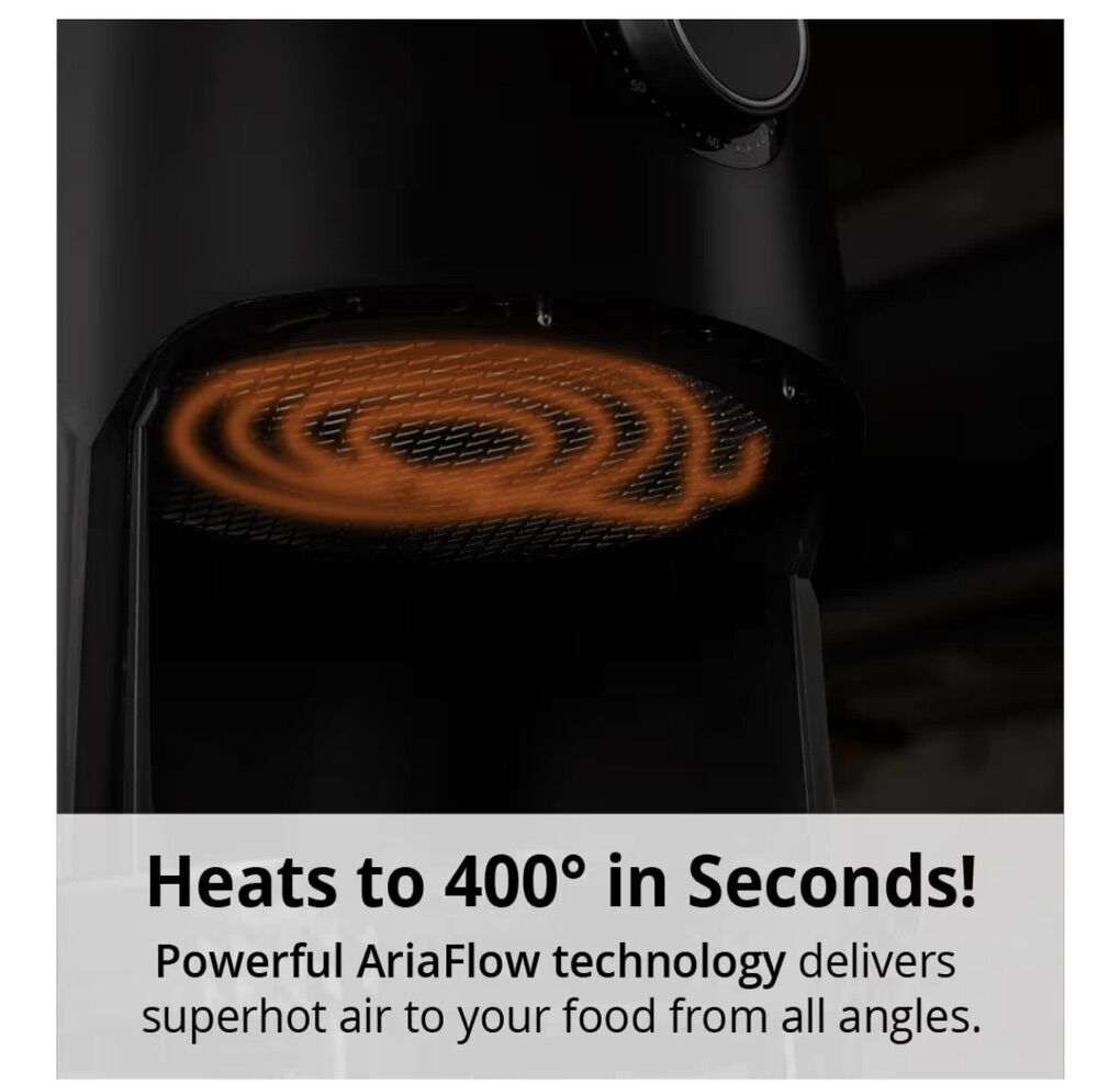 ApplePayAria Teflon - free 3 qt premium ceramic air fryer black, used only once and still in the box.