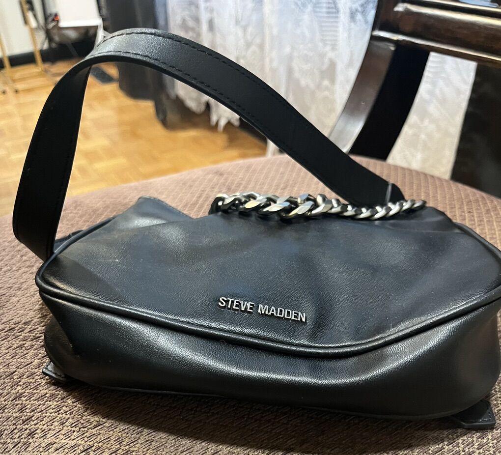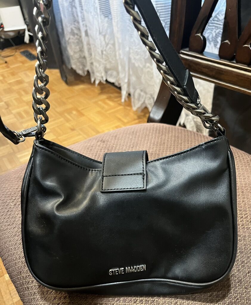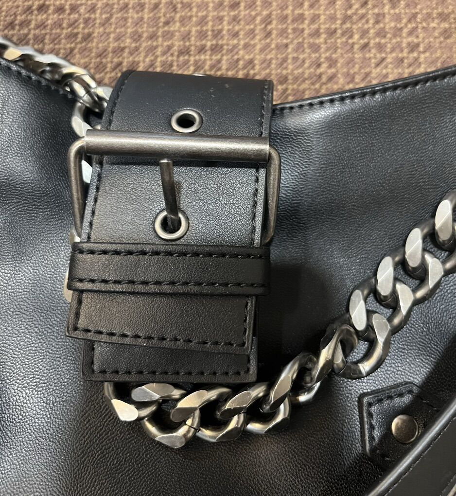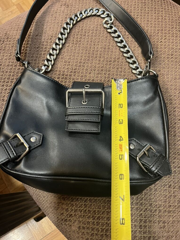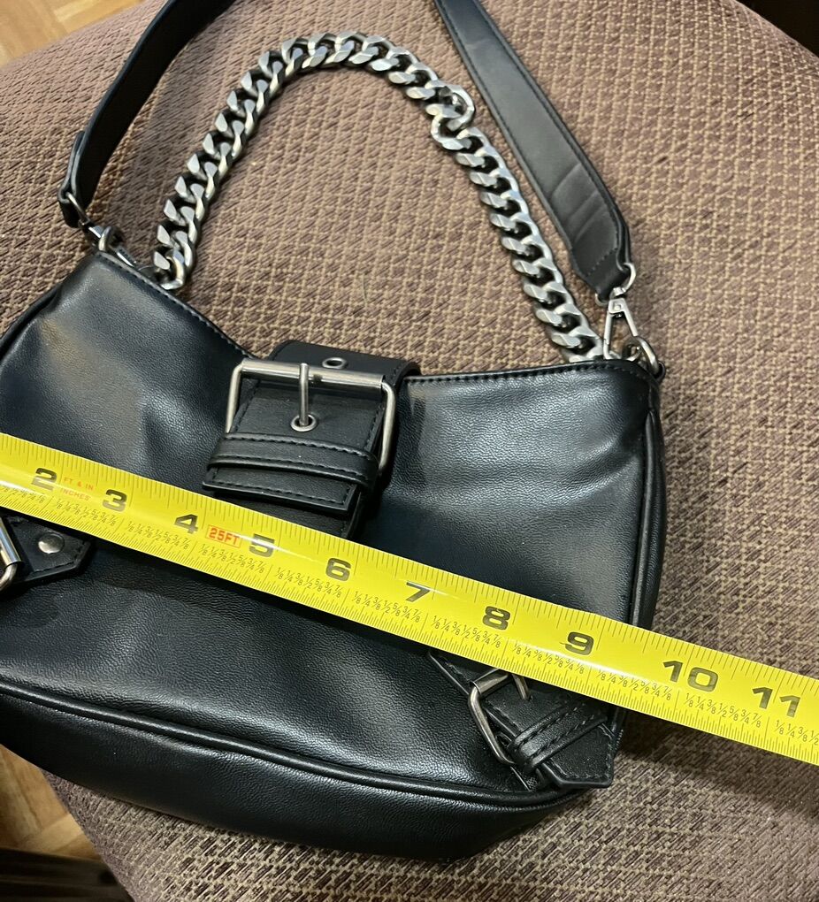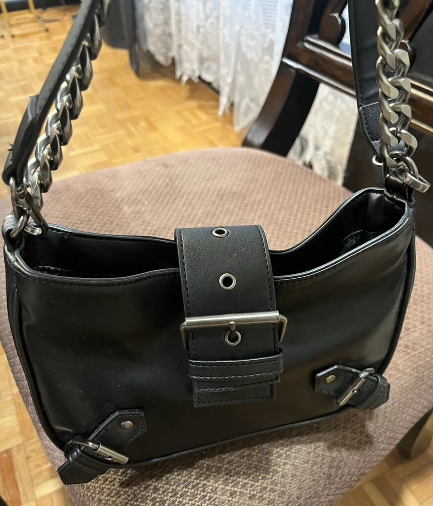 VenmoIn really good shape maybe used once. Black faux leather with a mix of silver tone chain and faux leather straps and decorative buckles