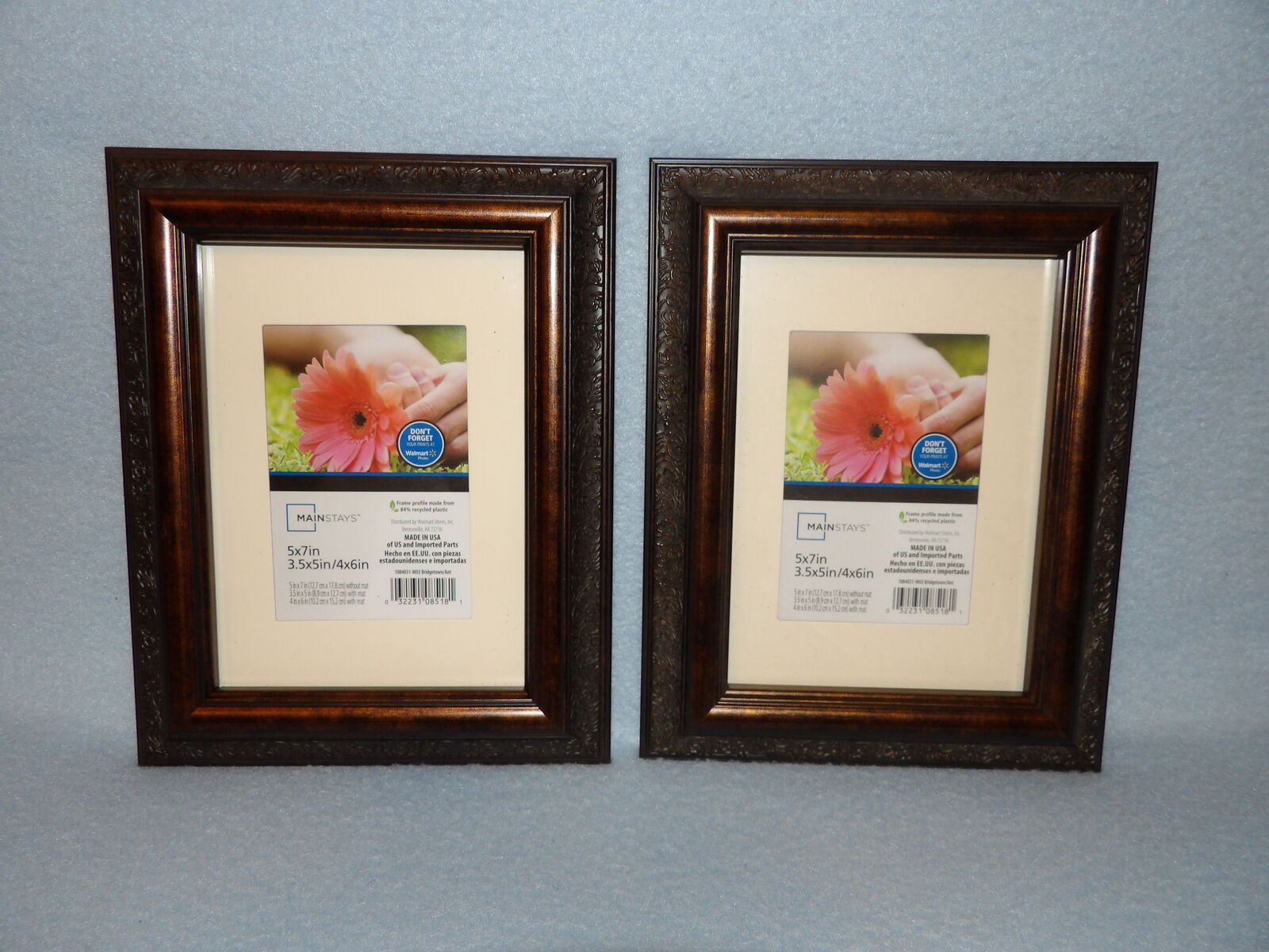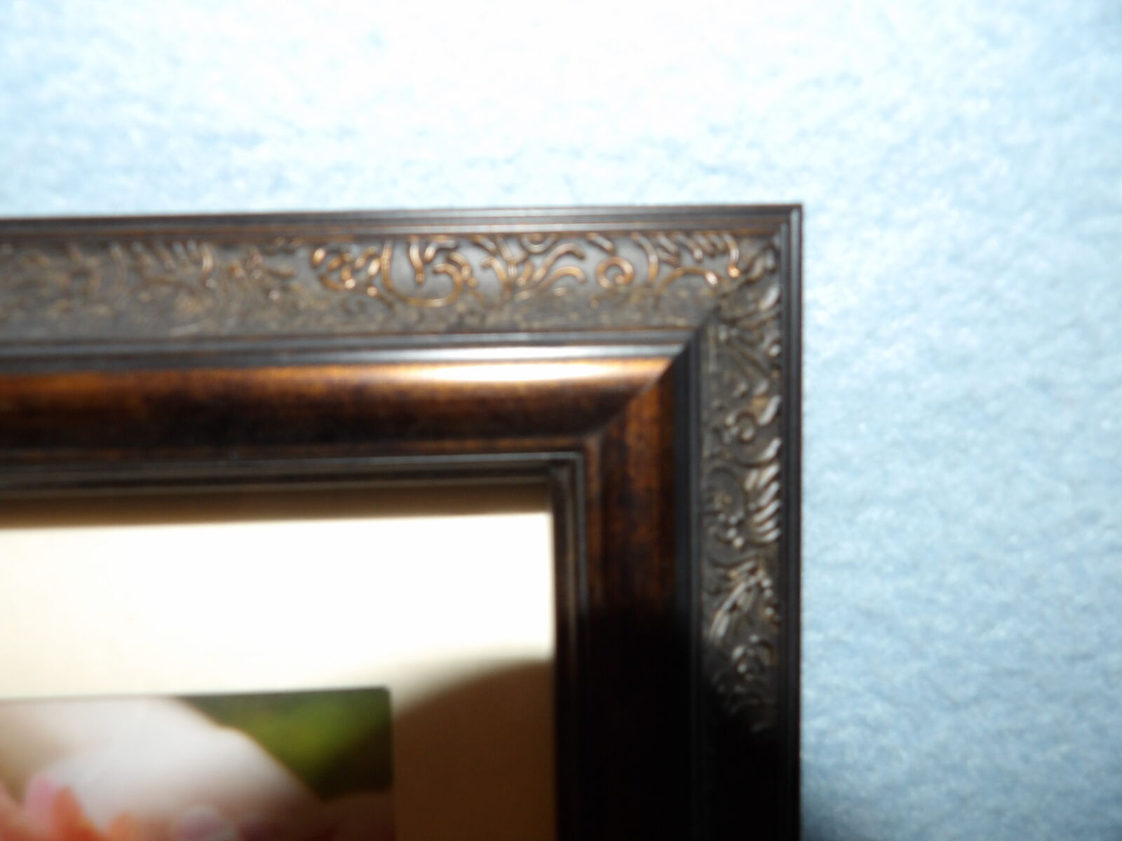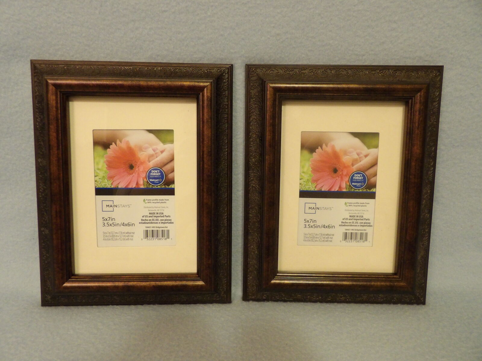 Frames are a sturdy plastic material and a brown-bronze color. Very lovely and will highlight any photo inside them nicely. $5 each or both for $8.
