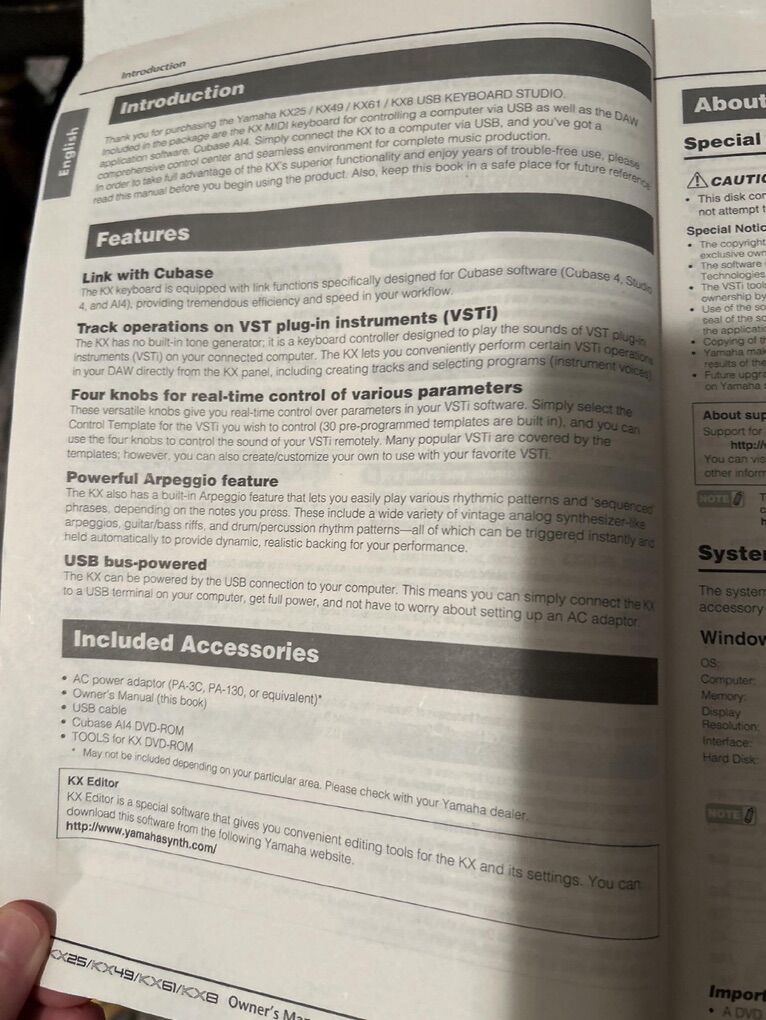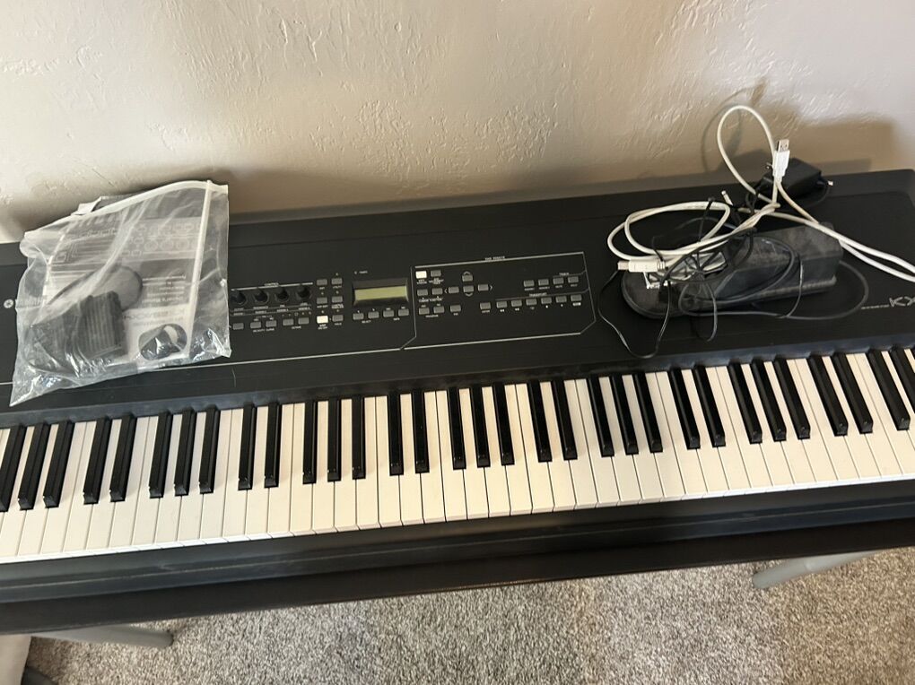 The Yamaha KX8 is a professional 88-key USB MIDI controller keyboard known for its realistic fully weighted hammer-action keys (GHS), designed for seamless integration with computer-based music production (DAWs) and software instruments, featuring DAW controls, an arpeggiator, and included Cubase AI software, offering an authentic piano feel without internal sounds, making it a popular, affordable way to control digital studios. Key Features: Keys: 88 Graded Hammer Standard (GHS) keys for a realistic piano touch. Control: USB bus-powered, DAW transport controls, assignable knobs, buttons, and templates for VST instruments. Arpeggiator: Built-in phrase factory with hundreds of editable patterns to inspire creativity. Software: Comes bundled with Cubase AI4 DAW software and an editor. Connectivity: MIDI In/Out, USB, sustain pedal input. Workflow: Streamlined for software music production with features like auto-switching templates and one-button functions. What it is: A controller, not a synthesizer with its own sounds. A tool to control software instruments on a computer. What it isn't: Not a portable, lightweight keyboard (it's large and weighted). Not a hardware synthesizer with internal sound engines (though it controls them).