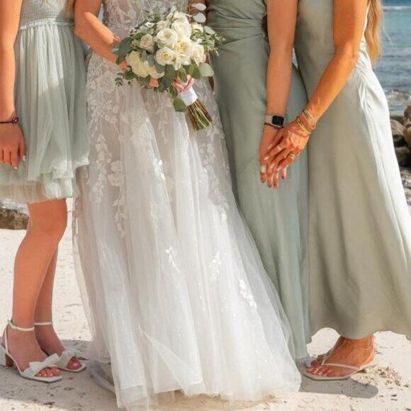 Loved it but I'm not sentimental and have no space. Brand new this dress is $2299! Who needs to spend that?! This dress comes with a sprinkle of magic from the boob fairy.