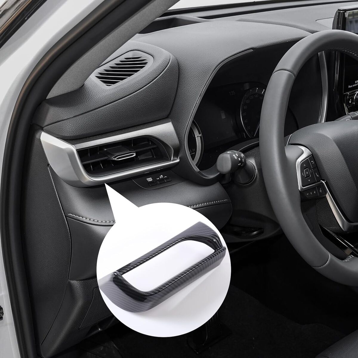 Material: premium ABS with painted carbon fiber grain, double- sided adhisive, decorate the dashboard for quick and convenient installation