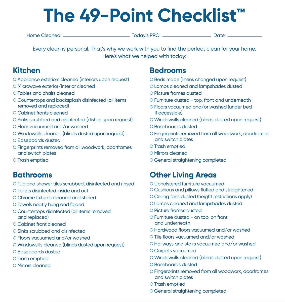 No one knows your home better than you, and no one spends more time there. That's why, before we start cleaning, we always ask what areas you think need the most attention in your home. From there, we reference our 49-Point Checklist to ensure all of your home's likely trouble areas are fully taken care of.