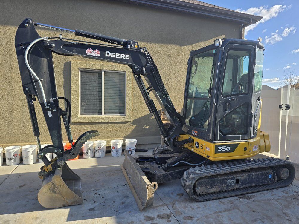 GooglePay2023 JOHN DEERE 35G ENCLOSED CAB 6 WAY BLADE HEAT/A/C BLUETOOTH AND ONLY 810 HRS. LONG ARM WITH COUNTER WEIGHT AND THUMB INCLUDED ALSO COMES WITH CHOICE OF 24" OR 34" BUCKET. BRAND NEW TRACKS AND JUST SERVICED WITH ALL.FILTERS AND OIL CHANGE. VERY NICE MACHINE. CALL. OR TEXT 801-941-4868