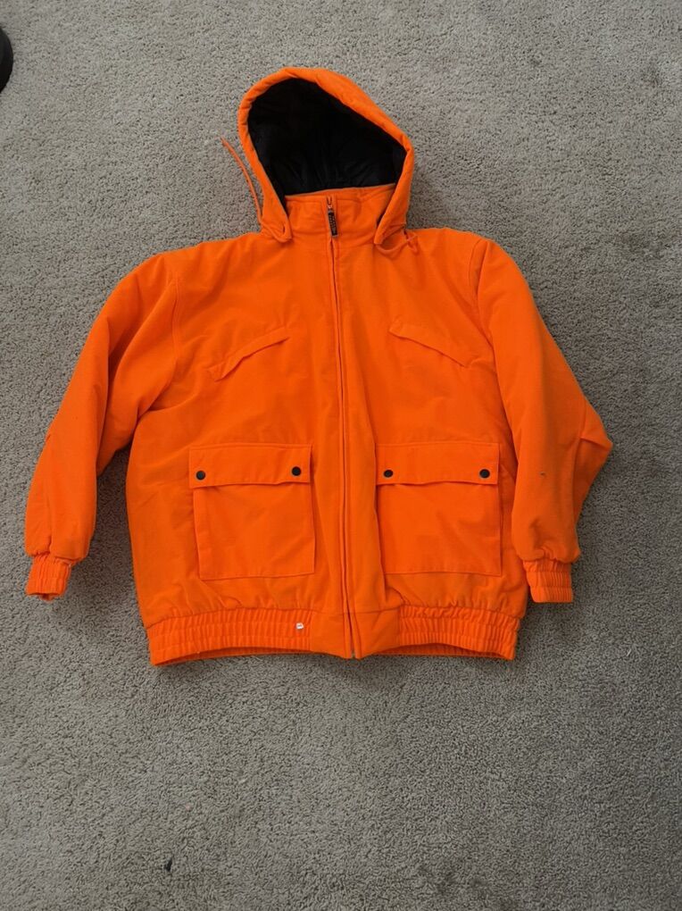 Orange wind\rain jacket size XL brand new -$15 Orange vest size 2xl brand new -$15 Orange heavy duty winter coat size 2xl brand new -$30 Orange zip up hoodie large brand new. -$15