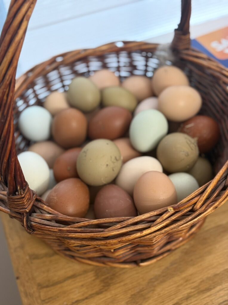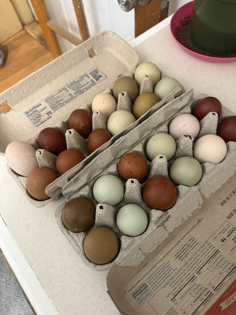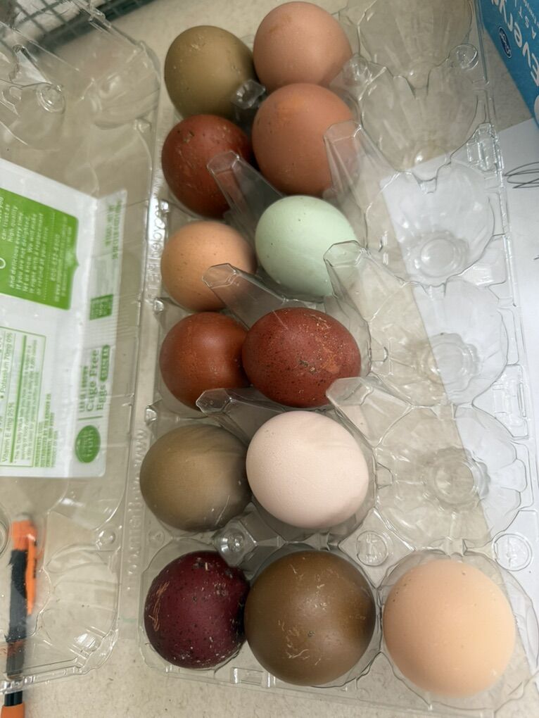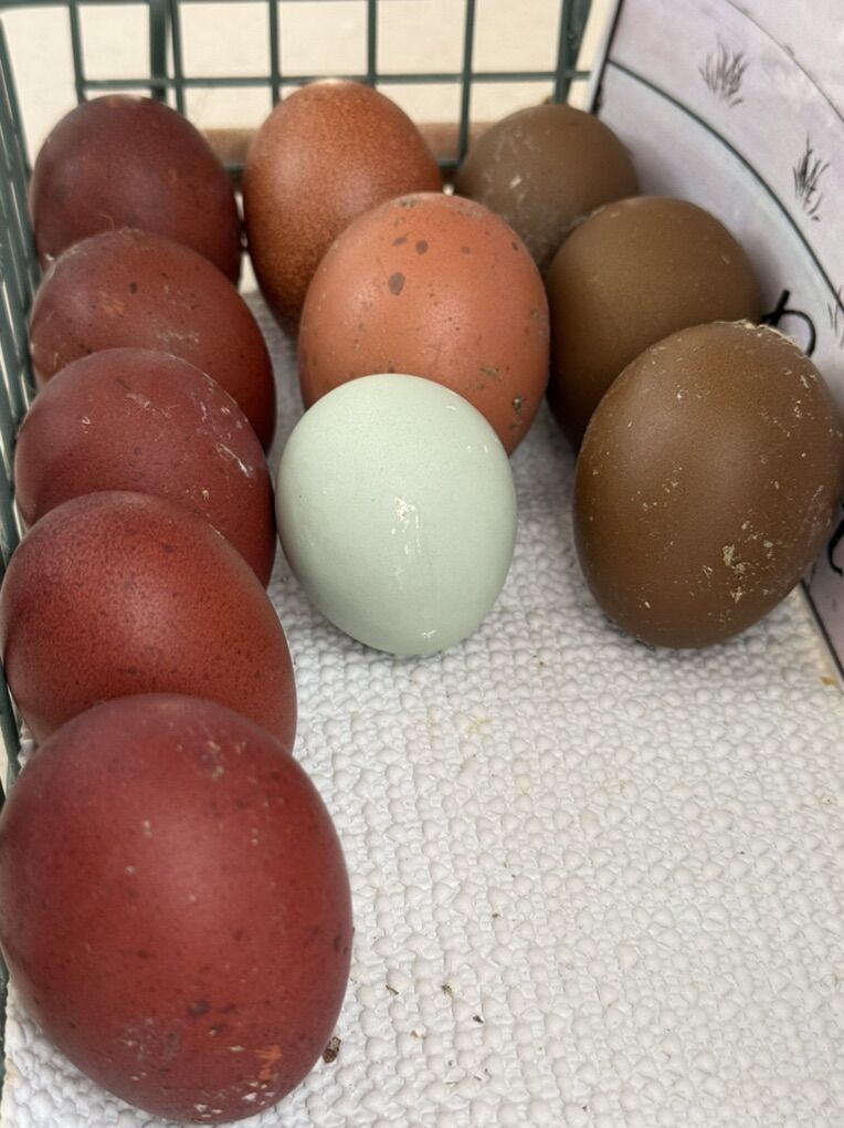 • $25 per dozen – Colorful assortment (mix of whatever is freshly laid)