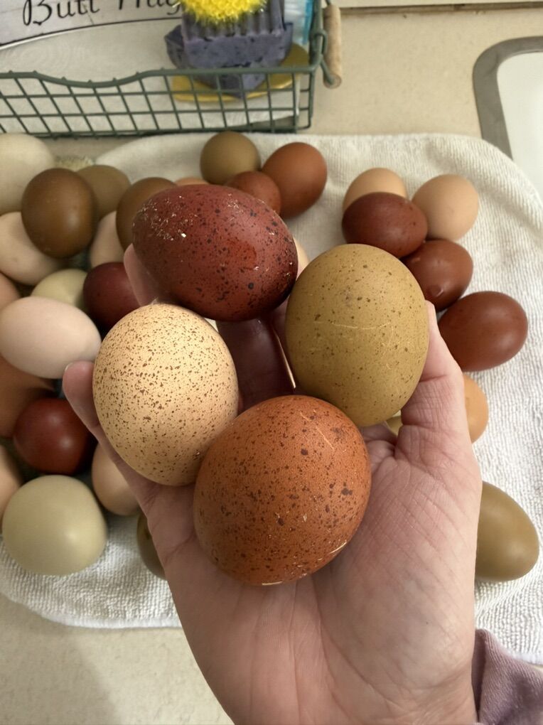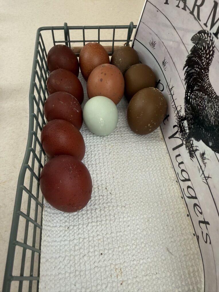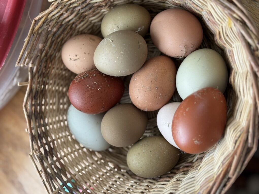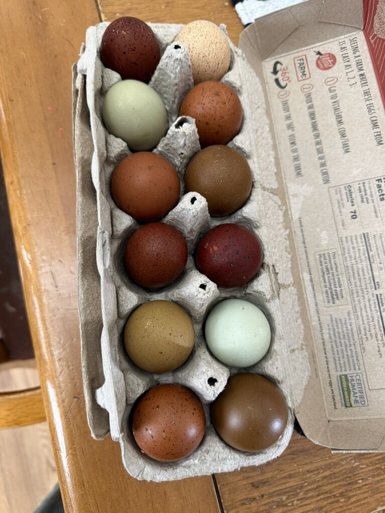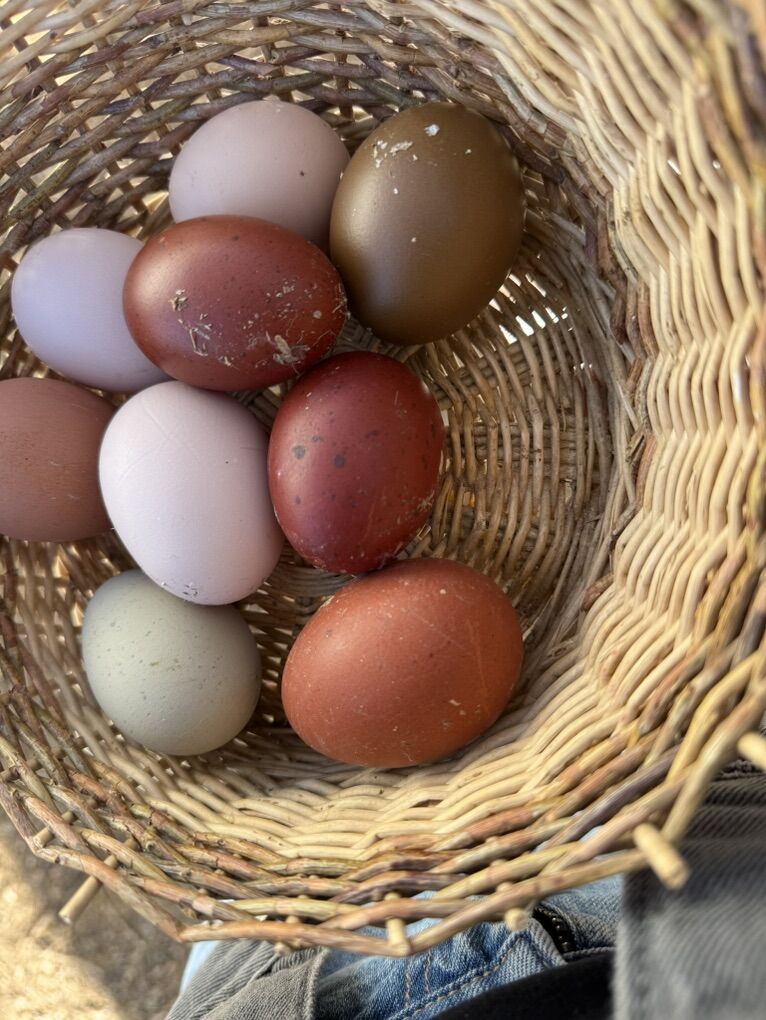 • $25 per dozen – Colorful assortment (mix of whatever is freshly laid)