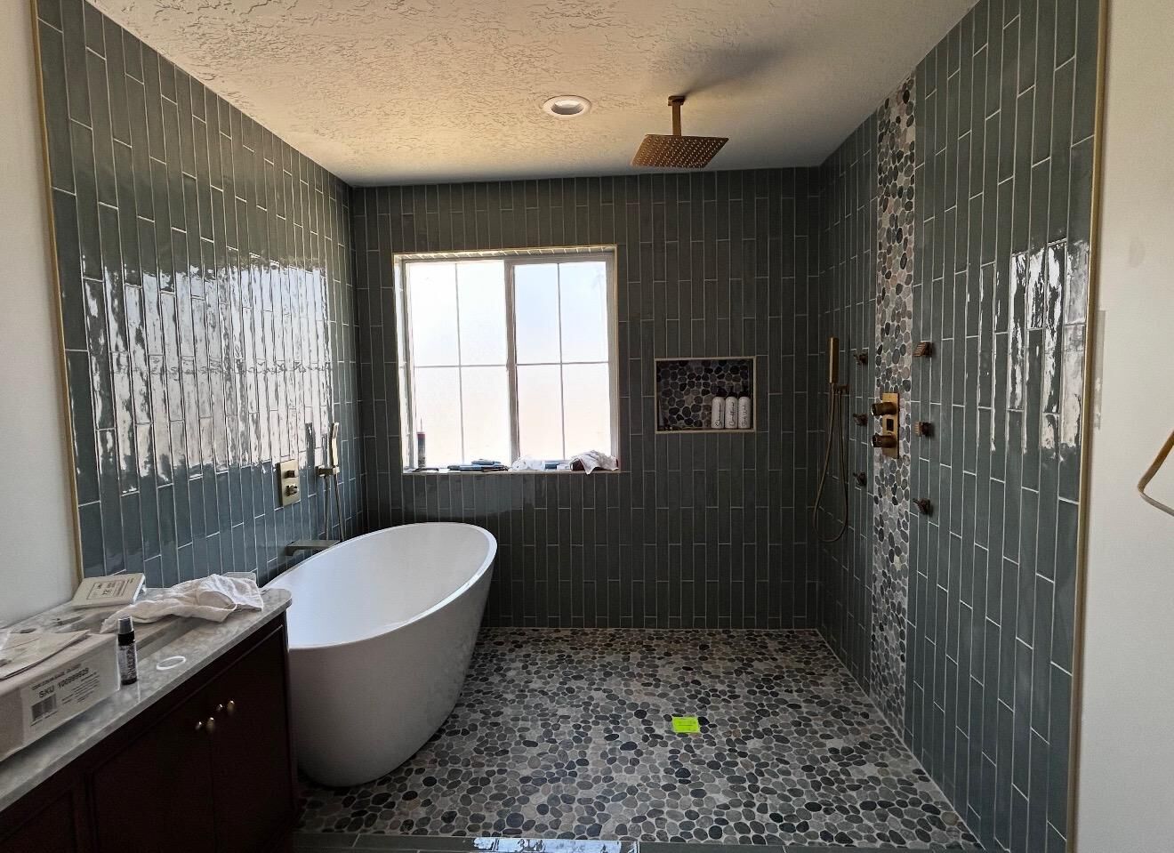 We specialize in high-end custom tile work and solid surface shower systems — whether you’re looking for a complete bathroom transformation or a simple backsplash update, we can do it all.