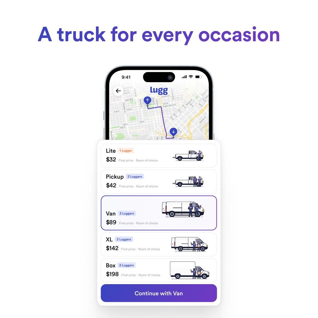 Visit book.lugg.com or download the Lugg app. Just enter your addresses, see your prices instantly, and book your move.