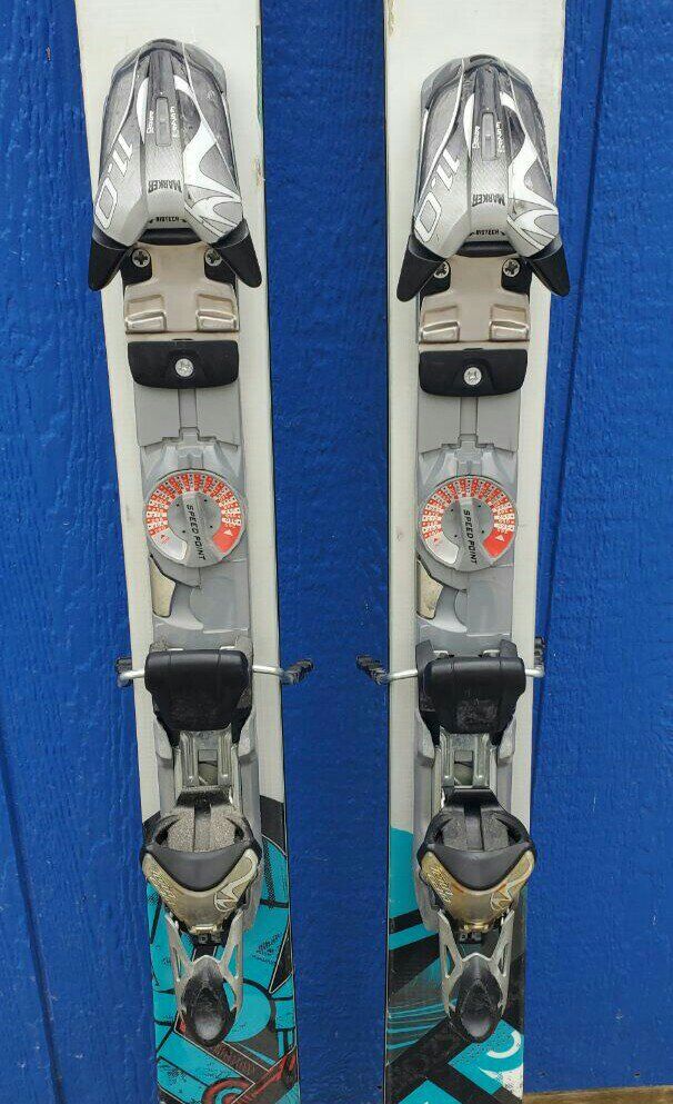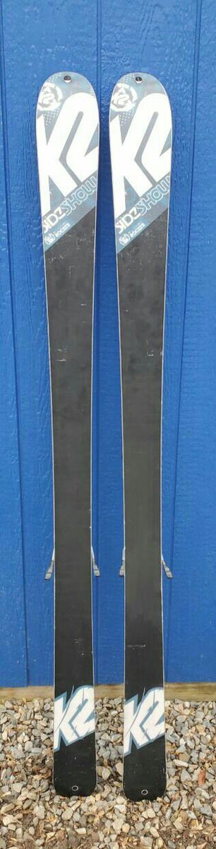 K2 Sideshow 172 cm all mountain rocker downhill snow skis. Skis have Marker 11.0 adjustable to your boot size bindings. Tip/Waist/Tail Dimensions: 132/90/115mm. Text please!