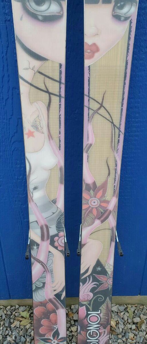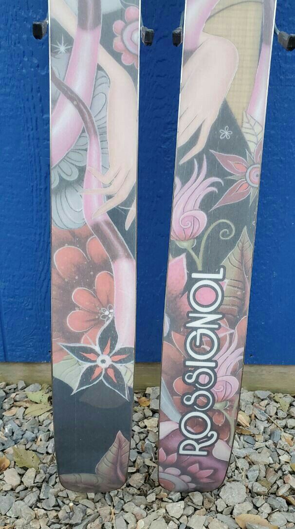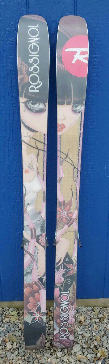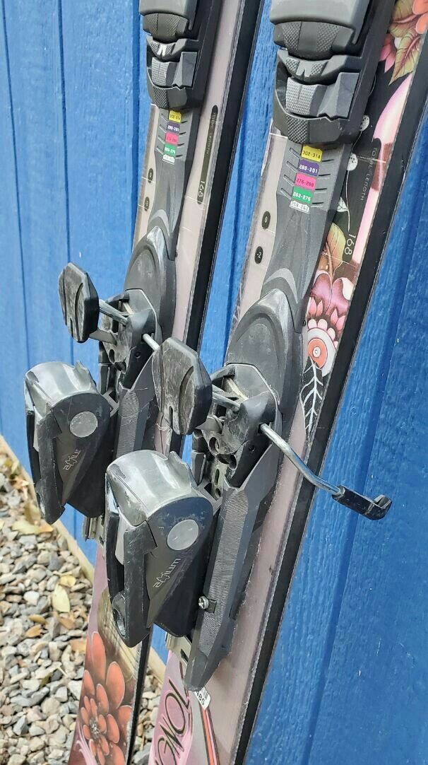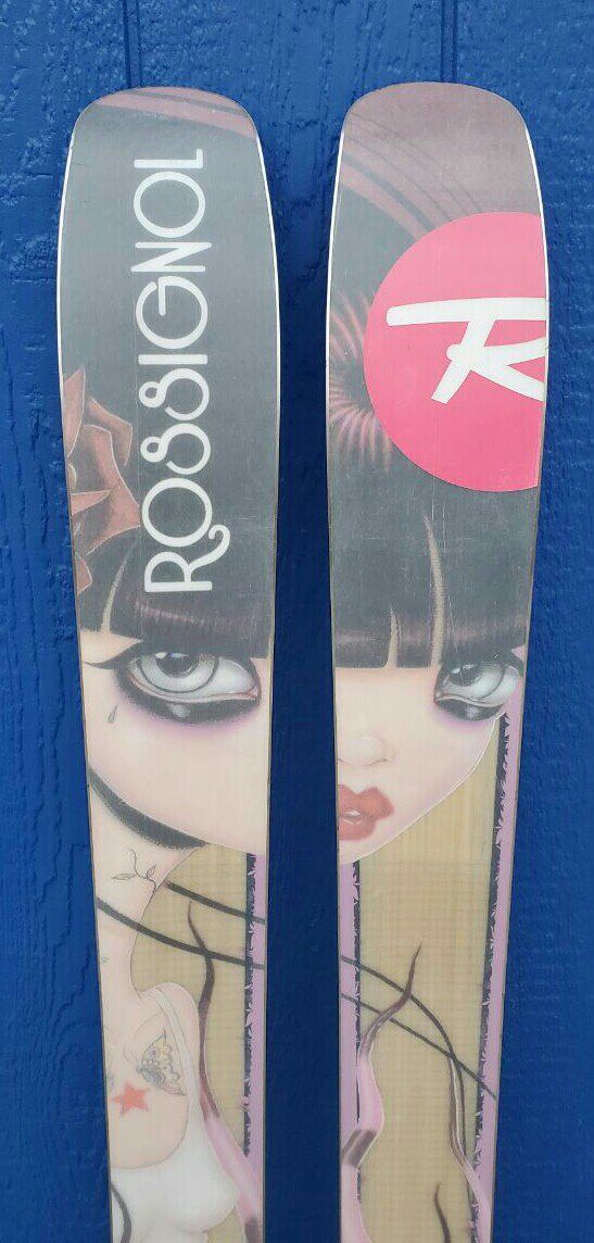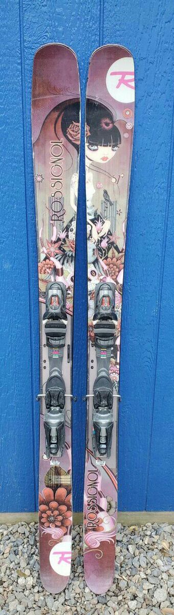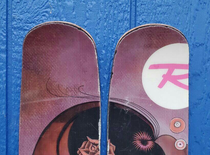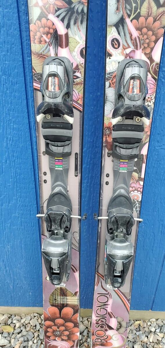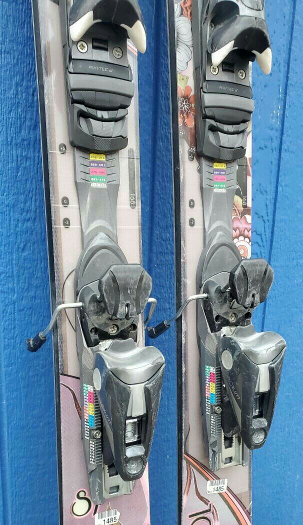 Women's 168 cm Rossignol S7 all mountain downhill snow skis. Has Rossignol 120 adjustable to your boot size bindings. Tip 140 / Waist 110 / Tail 118 mm. Skis are in great used condition. Text please!
