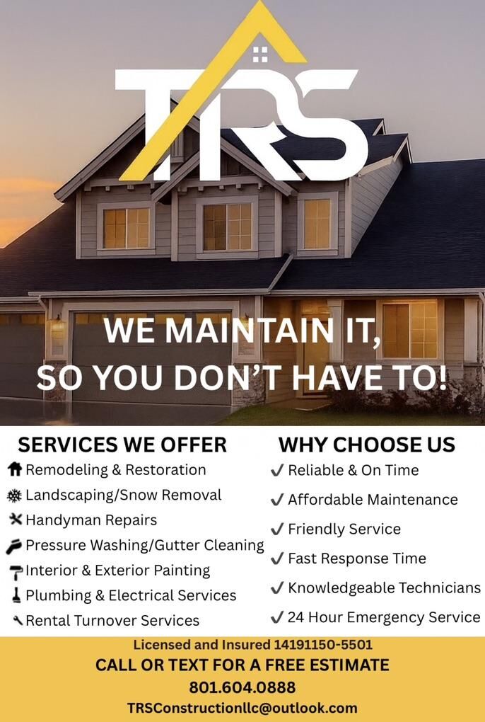 We maintain it, so you don’t have to! From repairs to renovations, we have you covered! -Remodeling and Restoration -Landscaping -Snow Removal -Handyman Repairs -Pressure Washing -Gutter Cleaning -Interior and Exterior Painting -Plumbing and Electrical Services -Rental Turnover Services -Friendly, Reliable, and on time