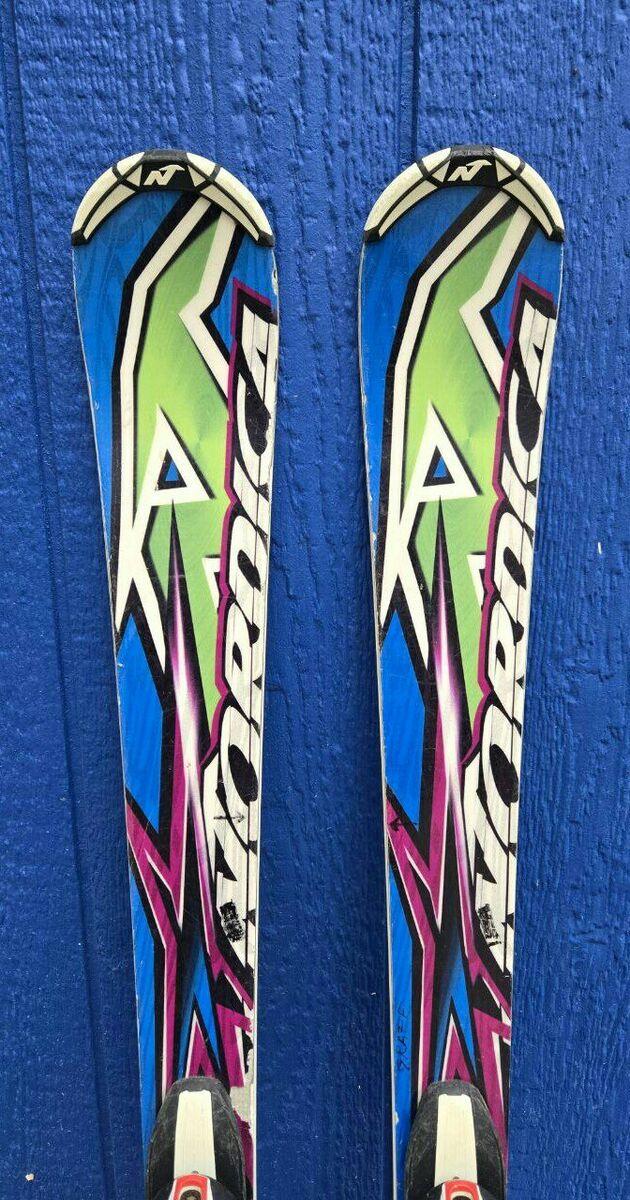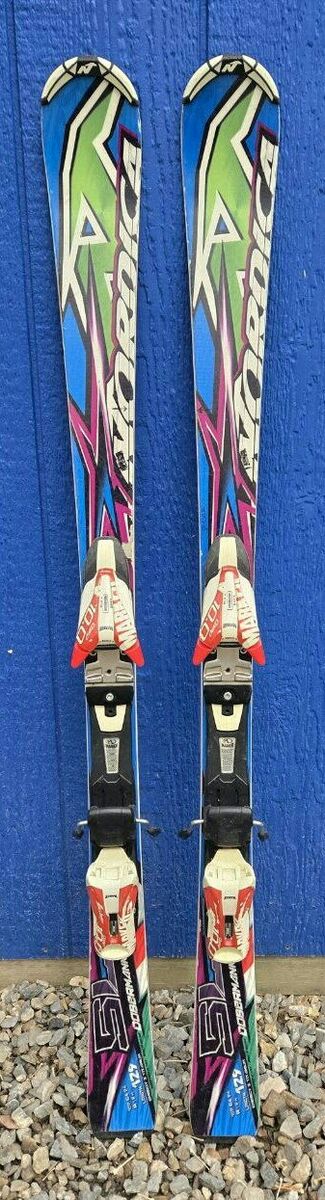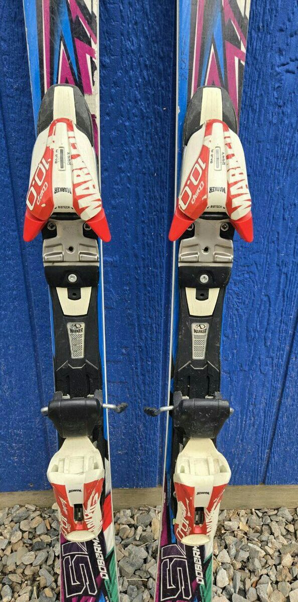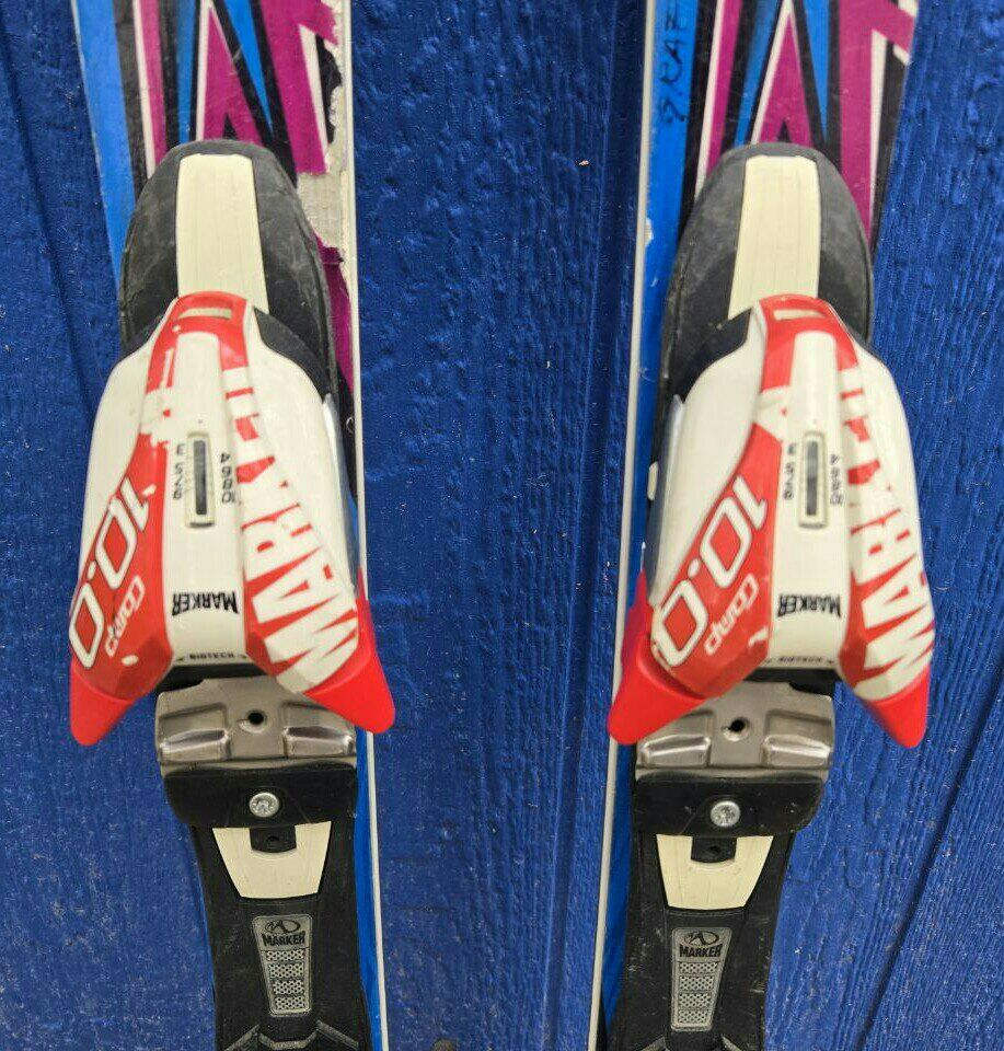 Kids Jr 129 cm Nordica SLj Dobermann all mountain downhill slalom race skis. Skis have Marker Comp 10.0 bindings. Tip/Waist/Tail Dimensions: 109/64/94mm. Text please!