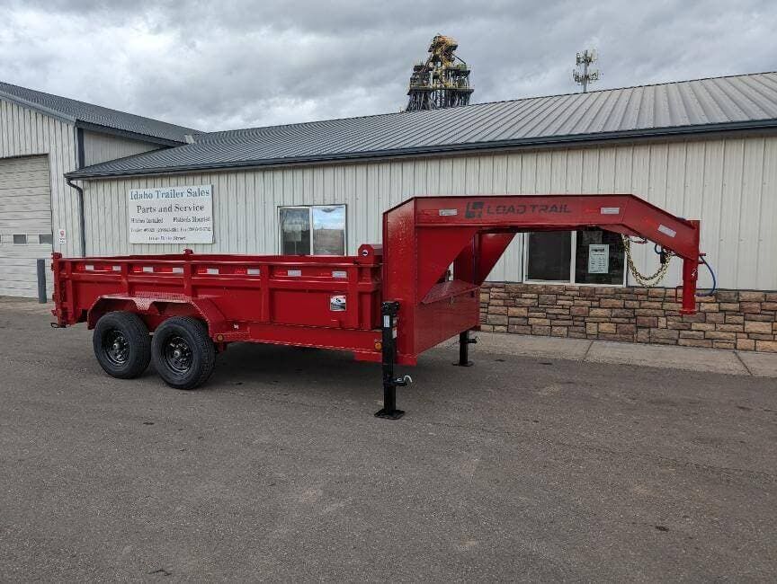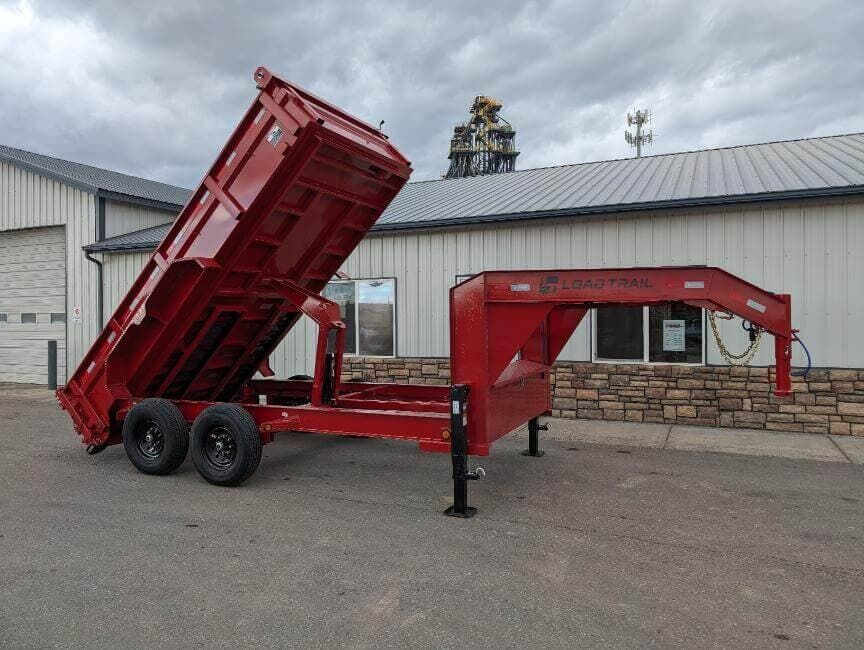 Load Trail 83″ wide x 14′ long 14K Low-Pro gooseneck dump trailer