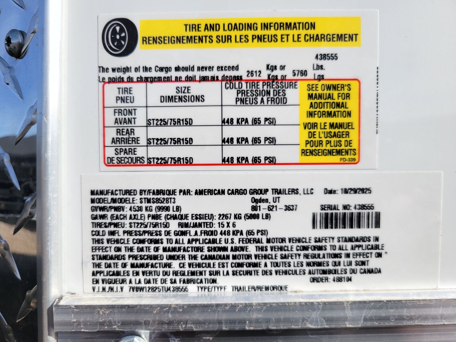 Stock #6T10677 VIN #7V0W12825TU438555 2026 TRAILER FEATURES: -19” Platform Height -Electric Drum Breaks -5,000 lb Torflex Torsion Axles -Front & Rear Ramp Door -All Aluminum Hardware -16” OC Tube Floor Crossmembers -16” OC Tube Wall Posts -16” OC Tube Roof Framing -Aluminum Fenders -36” Side Entry Door with Fold Down Step YOUNG TRUCK AND TRAILER SALES | KAYSVILLE HOURS: Mon - Sat | 8 am to 7 pm PHONE: (801) 447-2753 LOCATION: 220 North 650 West, Kaysville, UT 84037 www.youngtruckandtrailer.com\