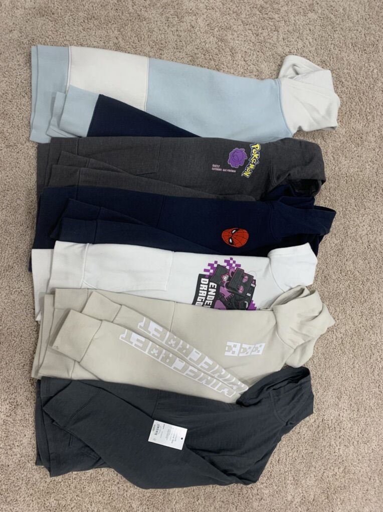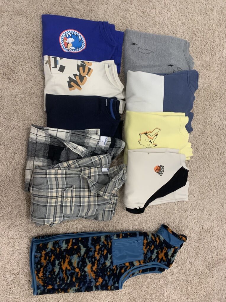 Good condition, mostly size 10-12 with a few items being size 8. Lots of t-shirts. Long sleeves, sweaters, hoodies, jackets, one light weight coat, denim shorts and jeans. Shorts and tanks
