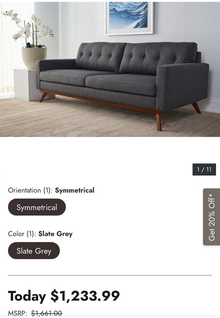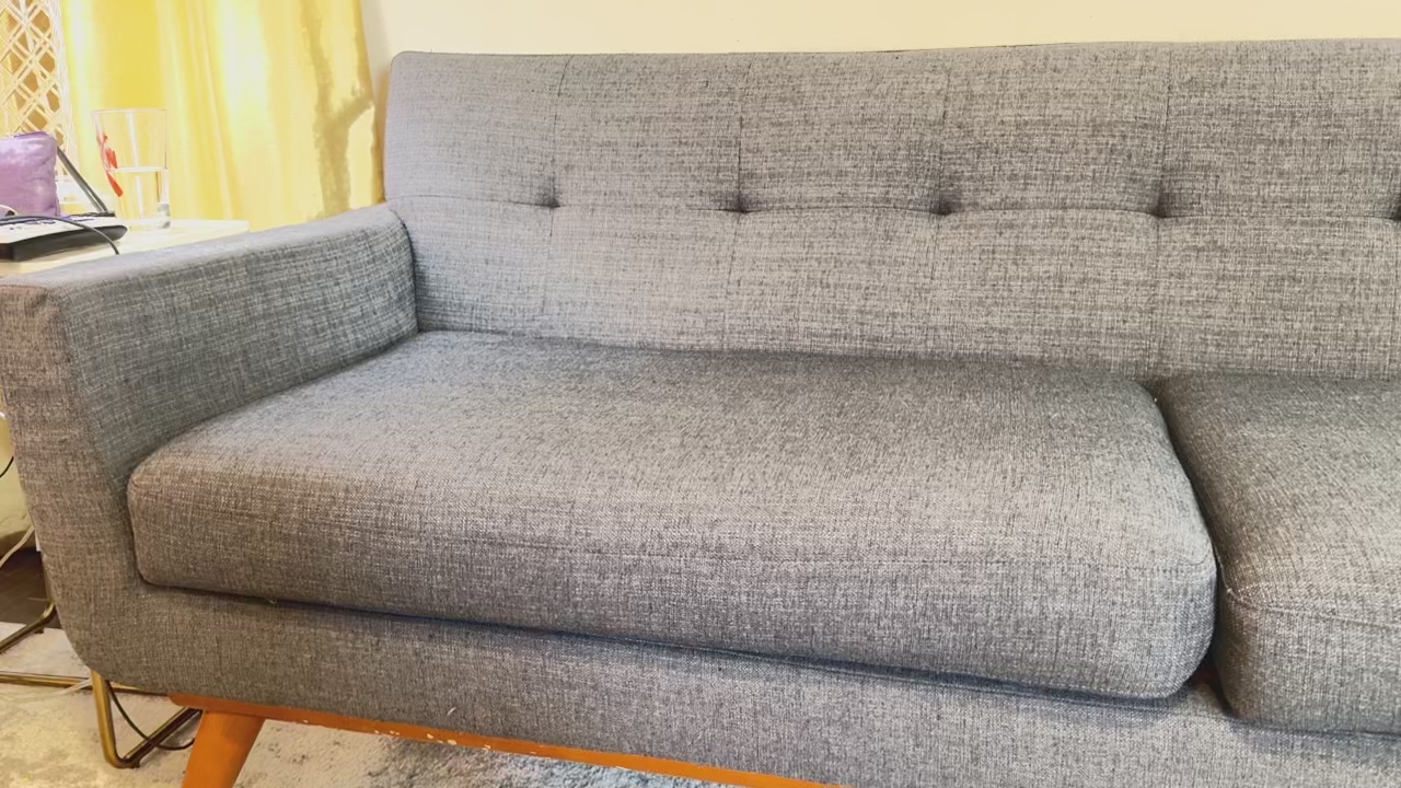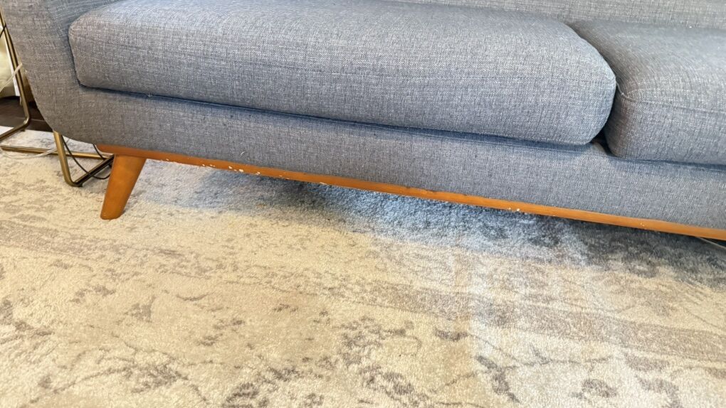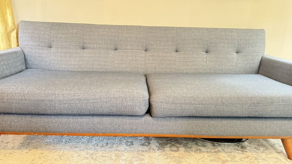 Long 85 inch sofa Speciations are pics Currently selling for over $1000 Asking $250 Small scratches along bottom wood ( see pics) On the firm side Fabric in really good condition Located in Daybreak area