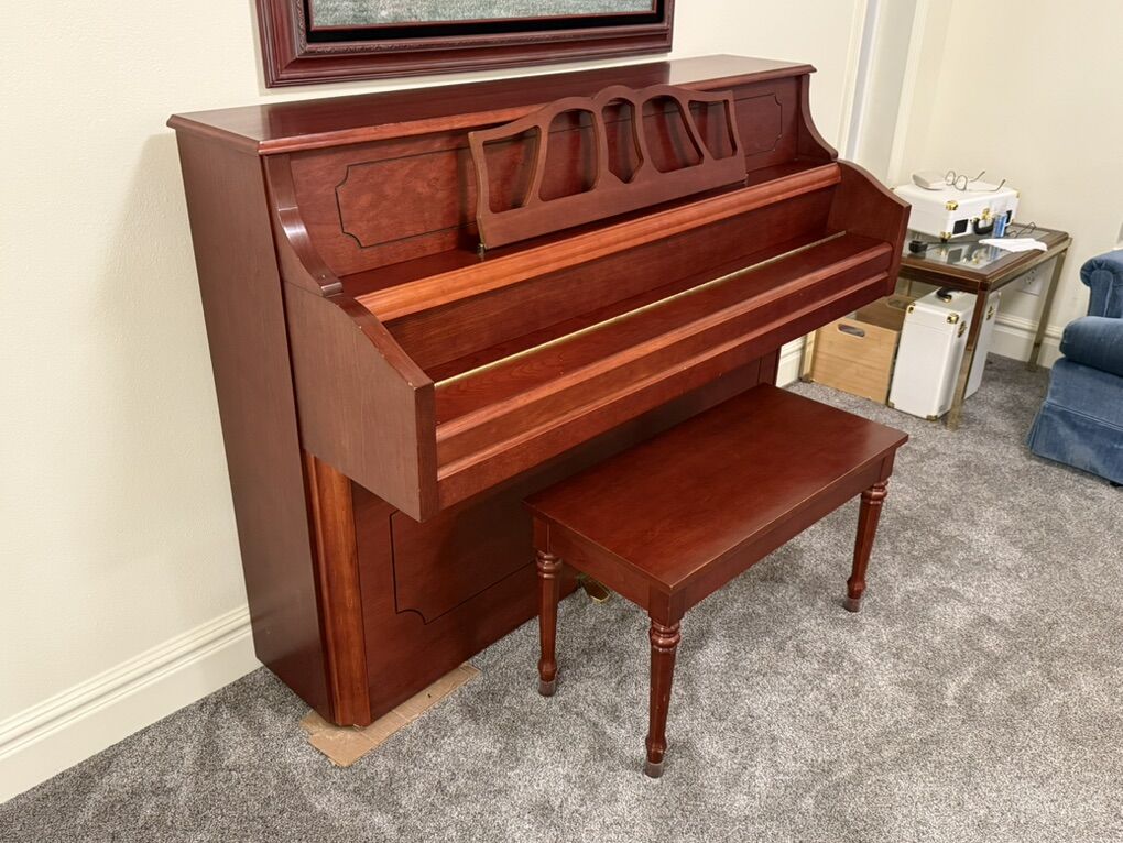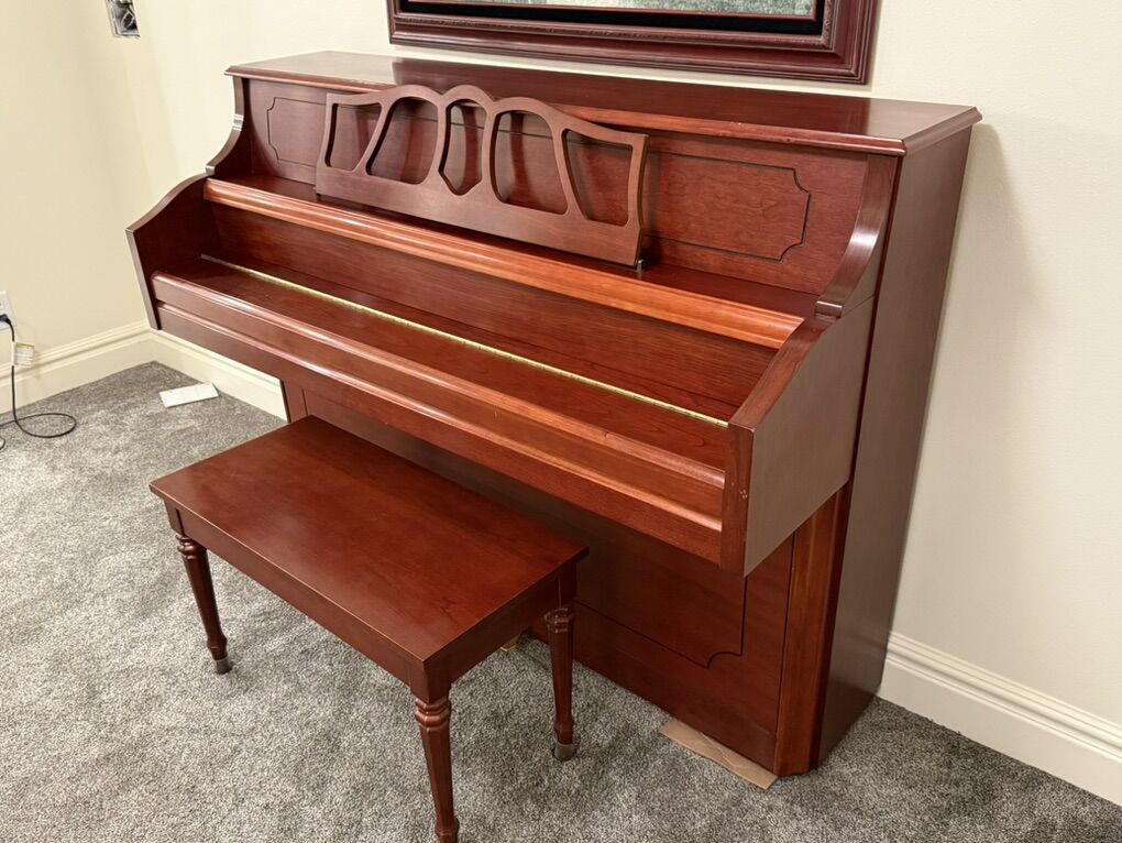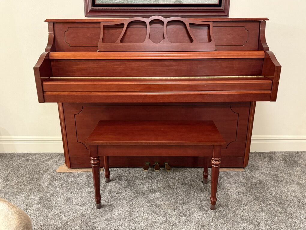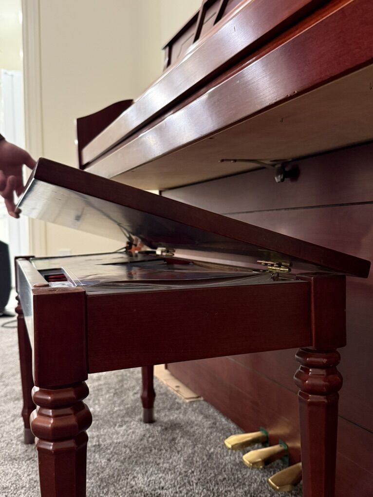 PayPalThis stunning Hobart M. Cable upright piano is in excellent condition plays beautifully. This piano is made from beautiful Mahogany. The piano comes with bench that has storage for sheet music and comes with a free digital metronome. It also comes with two support legs if you want, the legs do have some damage at the top from previous owner)