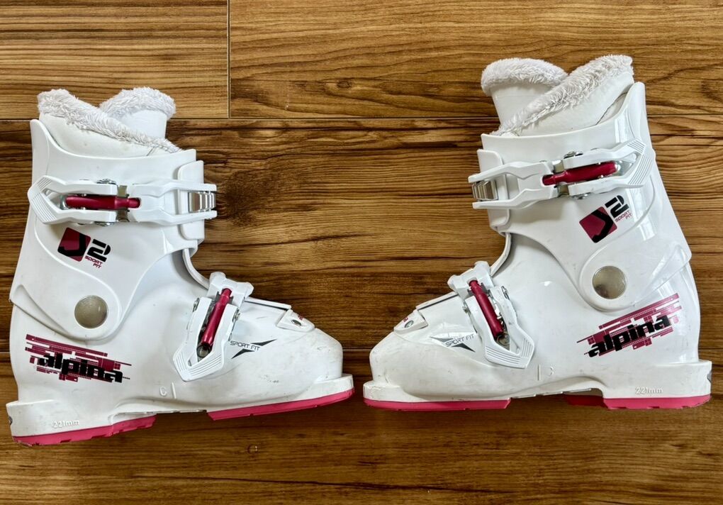 VenmoAlpina J 2 Sport Fit kids ski boots with 2 buckles. Size 185, 221mm, approx shoe size 11. Always stored indoors when not in use.