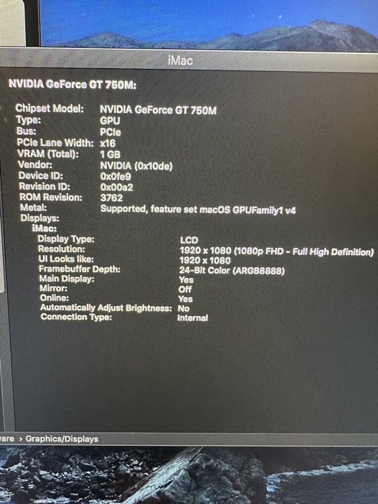 Built-in Display 21.5-inch (1920 x 1080) NVIDIA GeForce GT 750M 1 CB graphics