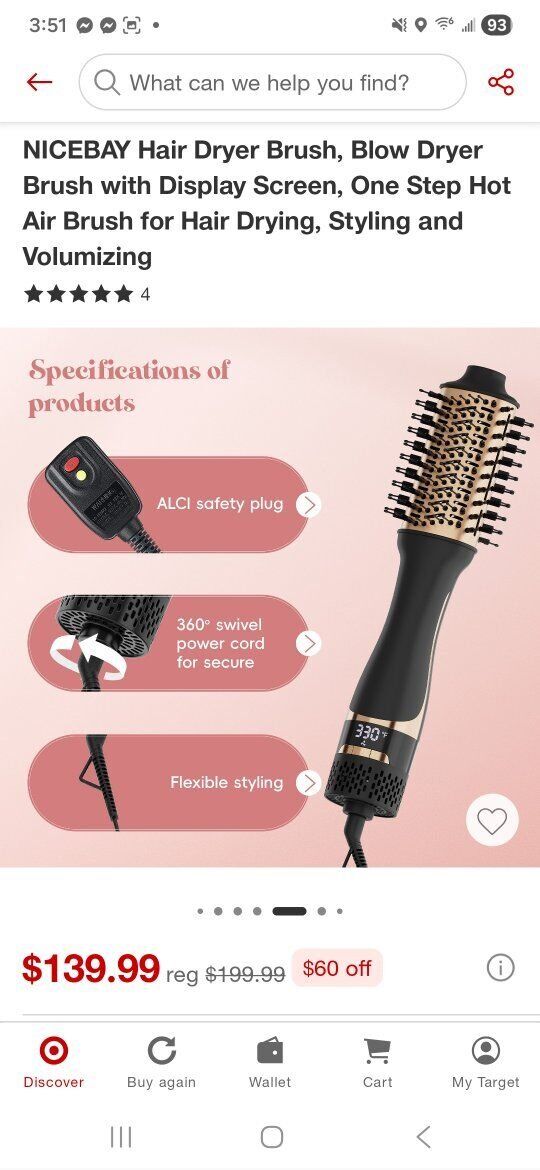 VenmoAll-in-one styling: Dries, straightens, curls, and adds volume to hair 1200 watts: Provides powerful performance for faster drying 9 customizable modes: Combines 3 airflow settings (low, medium, high) with 3 heat settings (130°F, 180°F, 240°F) to suit different hair types and styling needs. Display screen: An easy-to-read screen shows the current airflow and temperature settings Negative ion technology: Helps reduce frizz and static, adding shine to hair Ceramic barrel: Ensures even heat distribution to minimize heat damage Cold air function: A 100°F high-speed airflow helps lock in your style Safety features: Equipped with an ALCI safety plug and a 360-degree swivel cord for tanale-free and safe styling.