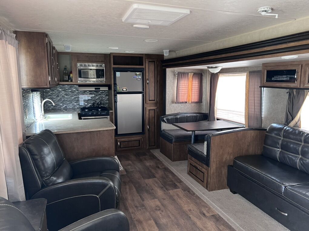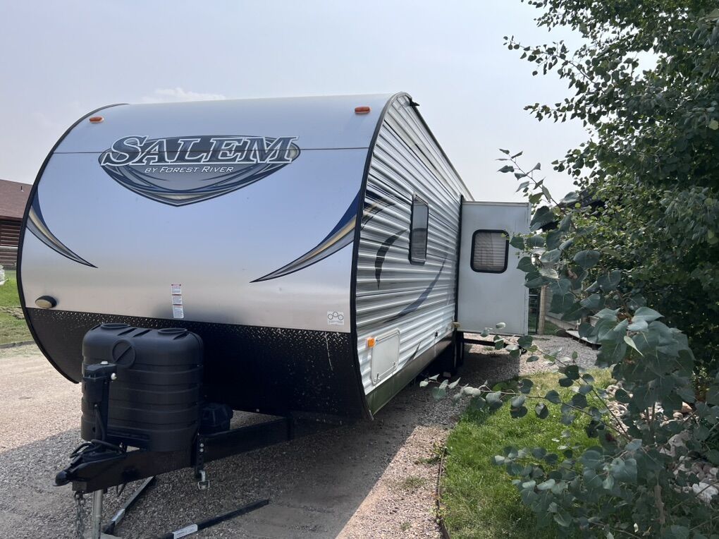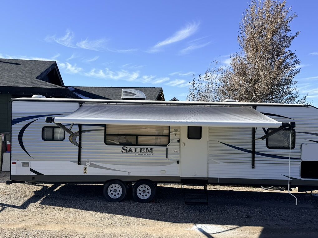 Zelle2016 Salem by Forest River M-27RKSS. Great little travel trailer, 33 ft in length, 1 slide out, sleeps 6, new awning and water heater in 2023, new batteries in 2025. Everything works, fridge, oven, lights. Has power jacks, led lights on the outside, lots of storage. 2 TVs and a winter RV cover included.