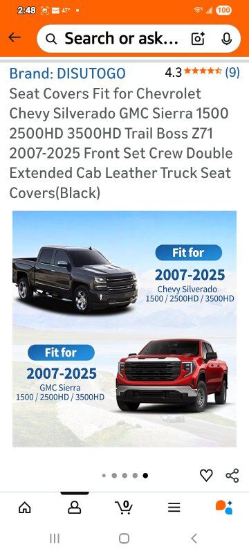VenmoNew in Box! Chevy Silverado or GMC Sierra Seat Covers for Years 2007-2025 (FRONT)