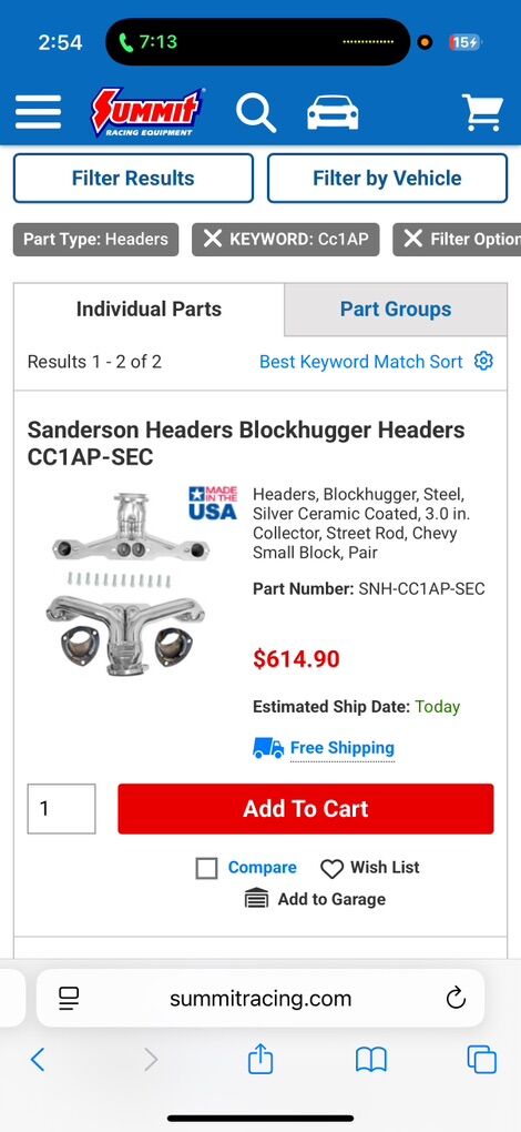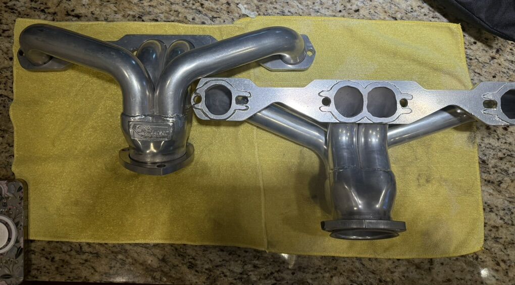 Sanderson Small Block Chevy Headers. Angle Plug Heads. High Performance Coated. These are expensive headers. $615 on Summit Racings website. Mounted on an engine but never ran. $500.00