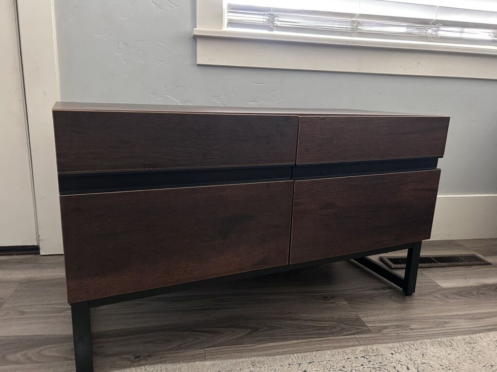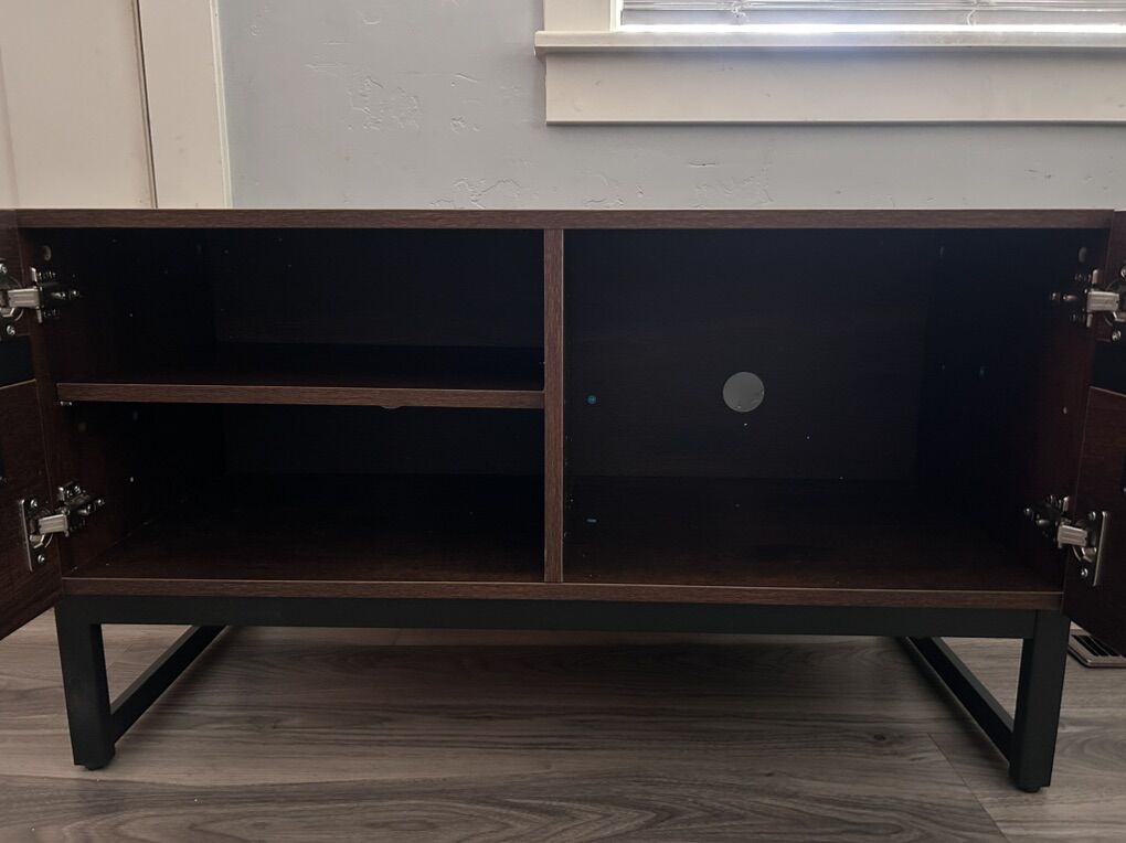 VenmoNew & just assembled. No issues. Great smaller tv stand. Dimensions in pictures. Cash or Venmo First come first serve