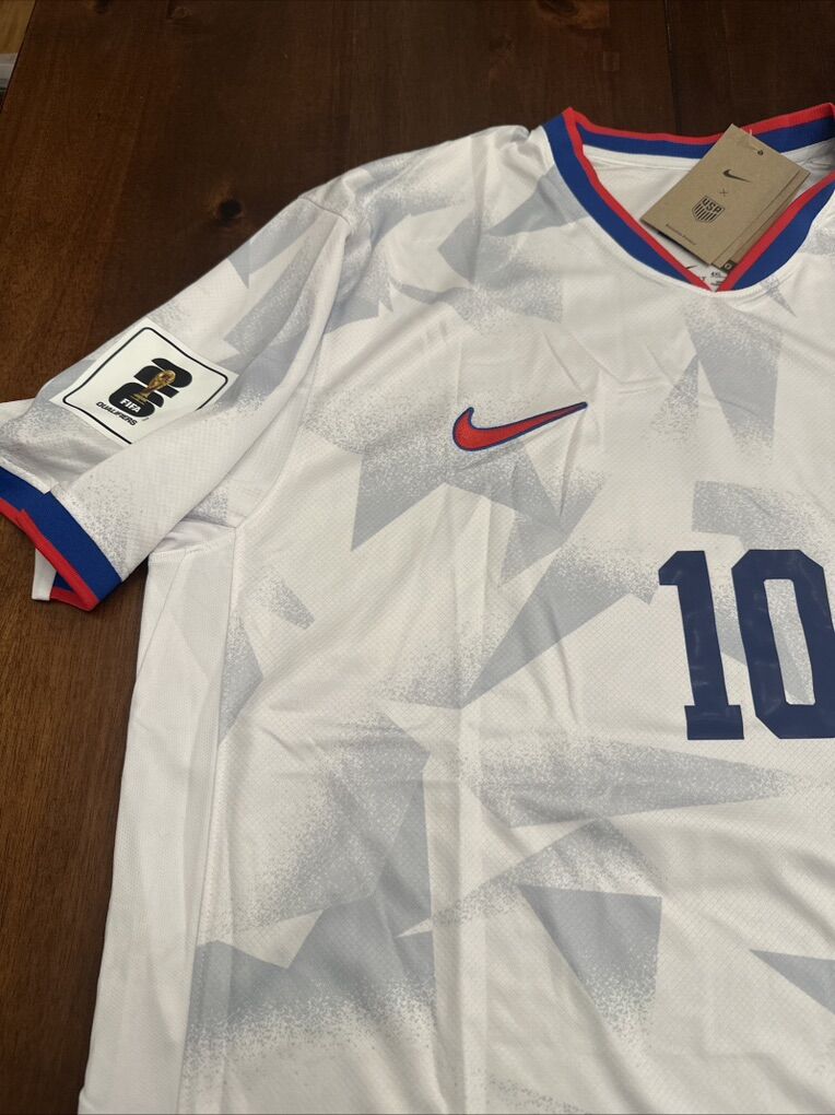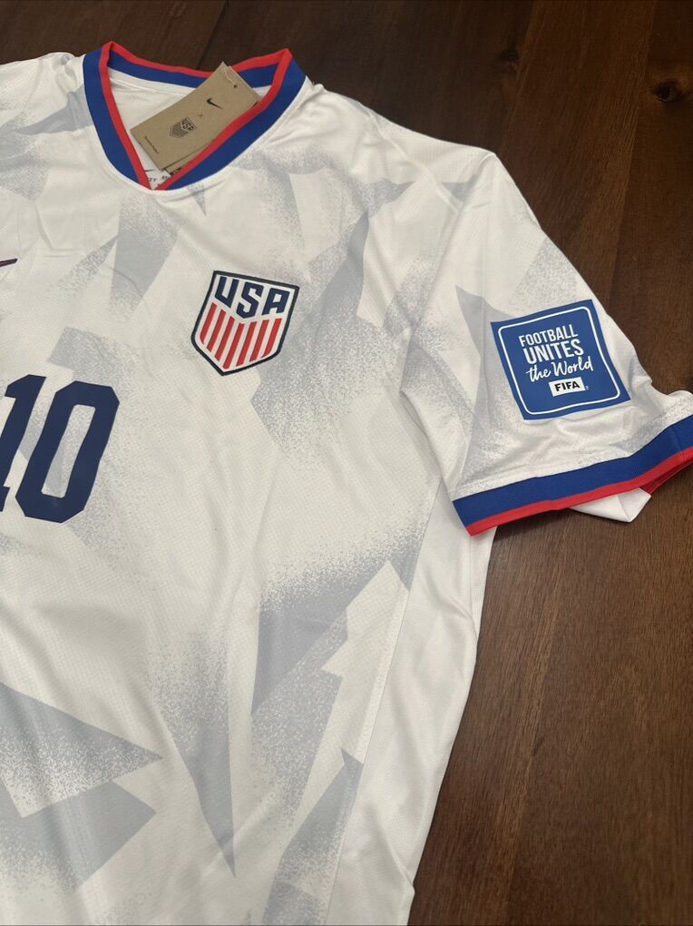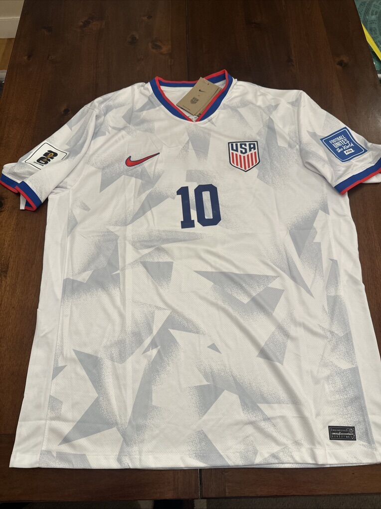 ZelleUSA Home Soccer Jersey Men's White PULISIC #10 Fits XL ~~2XL