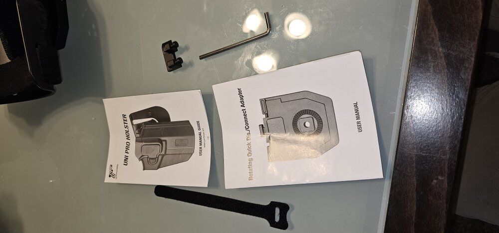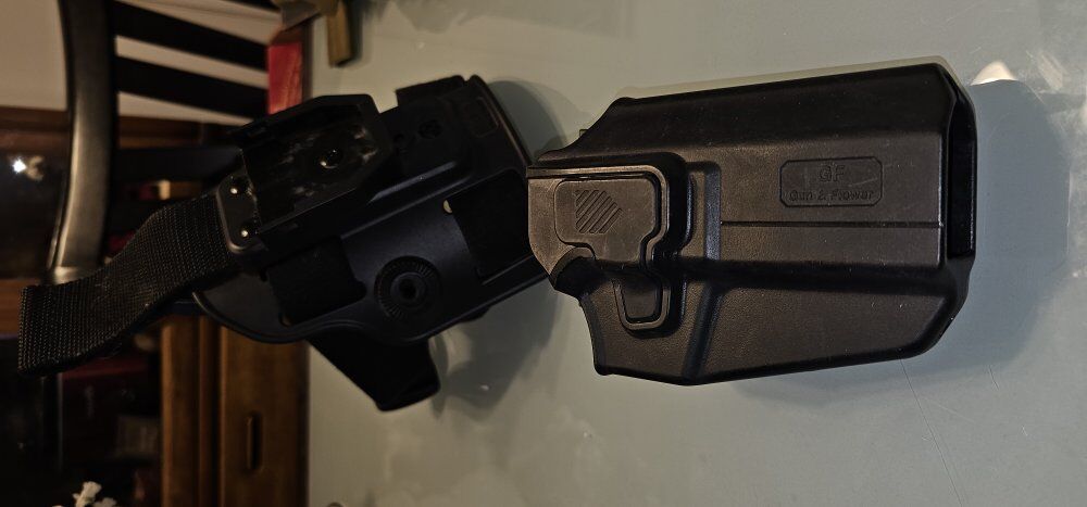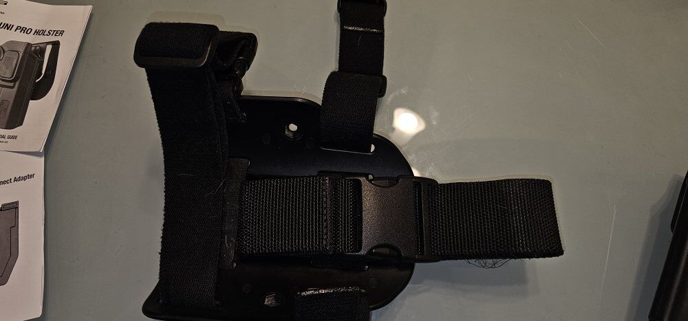 Comes with everything you see in the pictures. The holster itself has a button to adjust position and also is removable from the belt. Great condition. Cash only. Price is firm. No holds.
