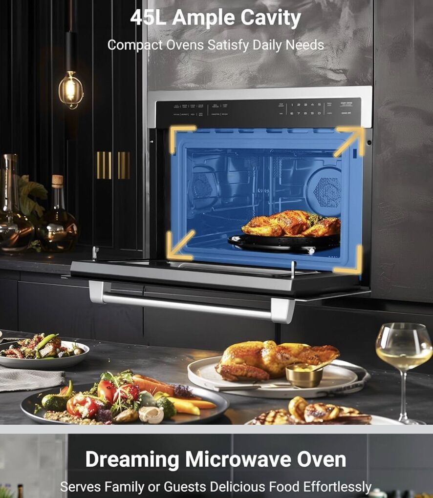 OBO 1.6 Cu. Ft Microwave Convection Oven,24 Inch Electric Built-in Wall Microwave Ovens Combo with Sensor Cook, 10 Cooking Modes 1000 Watt, Drop Down Door in Stainless Steel