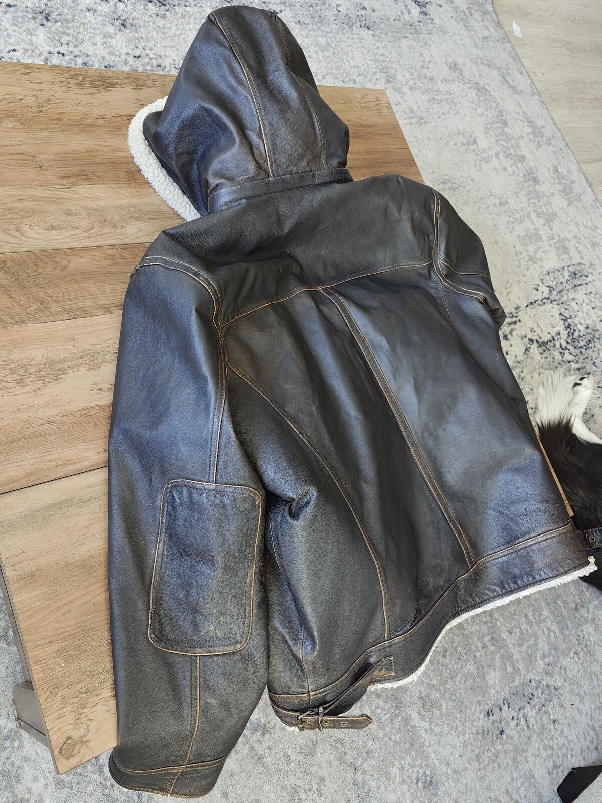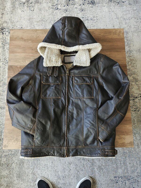 VenmoReal leather jacket with hood. Super warm.