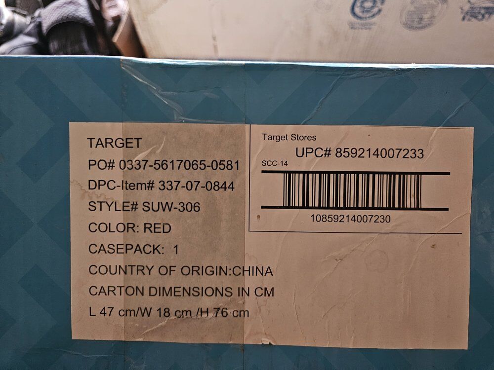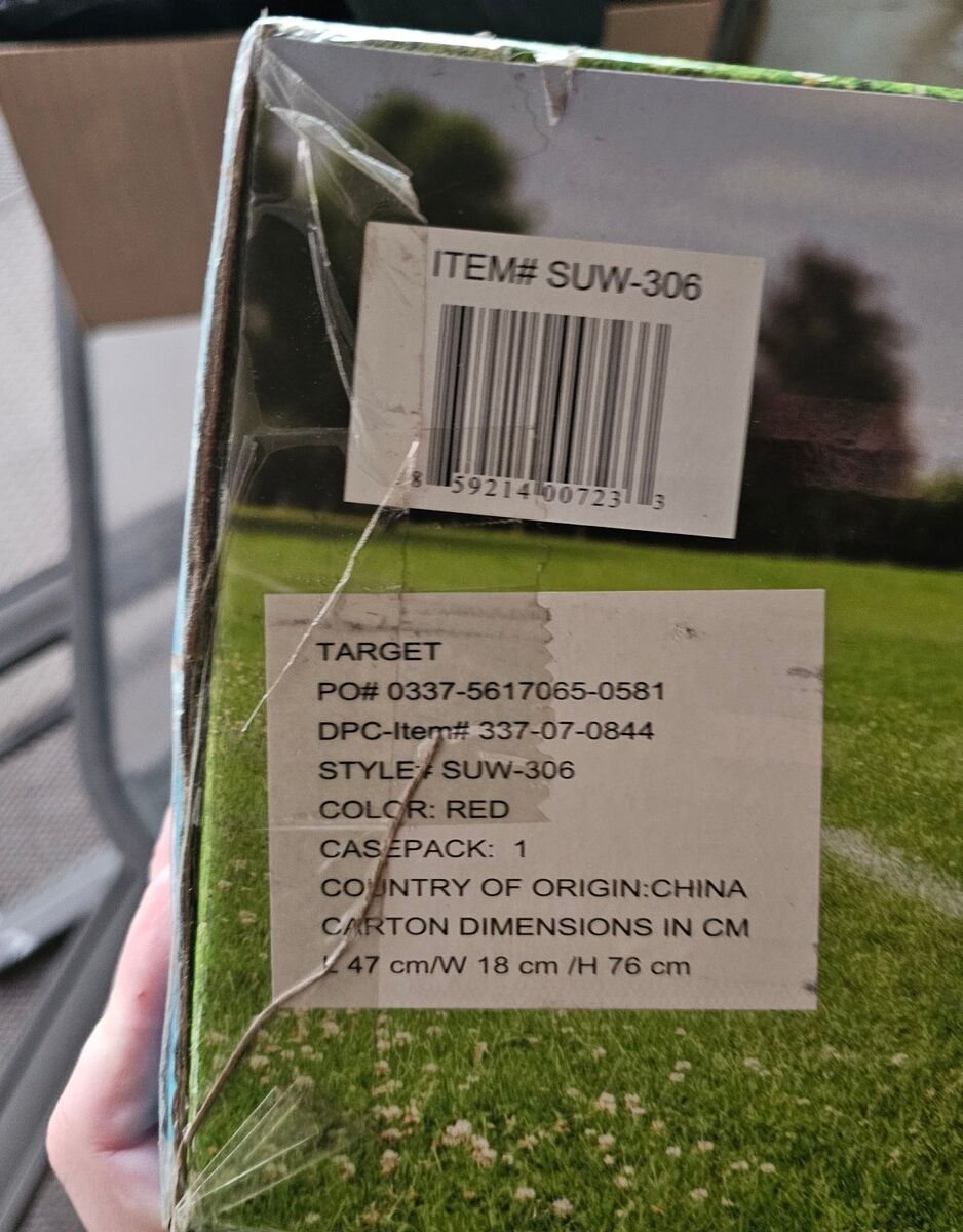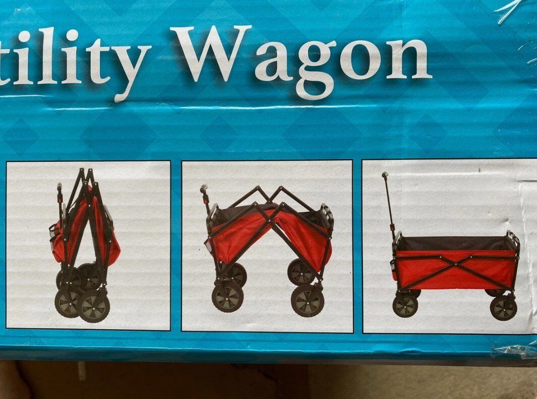 NEW-Item has not been opened and never used. The item is in NEW condition. All parts or accessories are intact FEATURES -Ideal for use at sporting events, concerts, trips to the park, beach, or around the house -Heavy-duty powder-coated steel frame allows for loads up to 150 pounds -Quick and easy set-up in seconds -All-terrain rubber wheels make pushing over uneven ground or sand a breeze -Folds compactly and stores easily in your trunk, garage, or closet -Durable 600D polyester fabric resists tearing and fading -Foldable: Yes -Carry weight: 150 pounds -Color: Red Open dimensions (L x W x H): 33” x 18” x 21.5 inches Folded dimensions (L x W x H): 29.5 x 18 x 6.9 inches -Weight: 14 pounds -Product Condition: New in box SUW-306