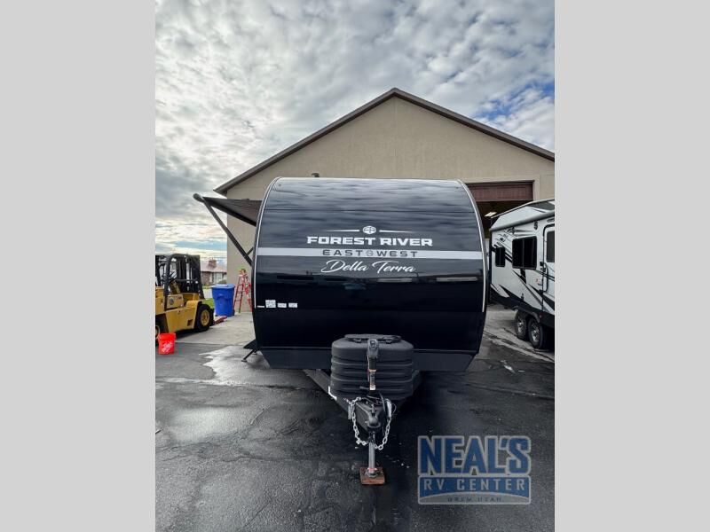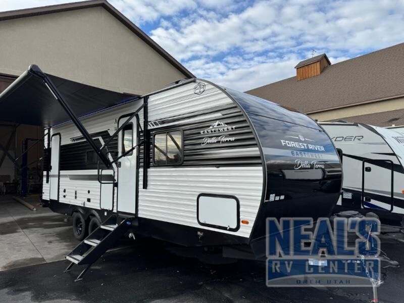 Each Della Terra travel trailer by EAST TO WEST is constructed with an enclosed and heated underbelly and enclosed holding tanks for added protection against the elements. There is also a power tongue jack with an LED light for easy set up and a power awning with LED lights you can rest under after you've unpacked. The Explore Comfort Package comes seamless pressed countertops, kitchen backsplash, window valance package with black night shades, and many more comforts. You will also appreciate the Adventure Outdoor Package with backup camera prep and solar prep, a tankless water heater, an RV grill quick disconnect, and a universal docking station with battery disconnect.