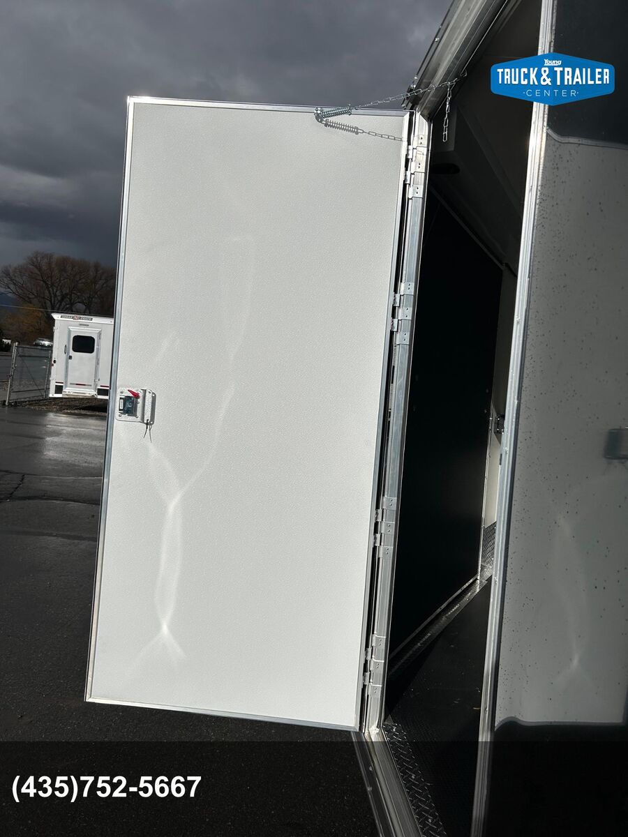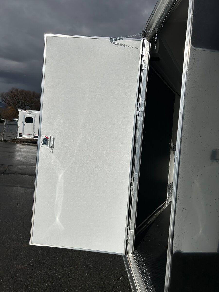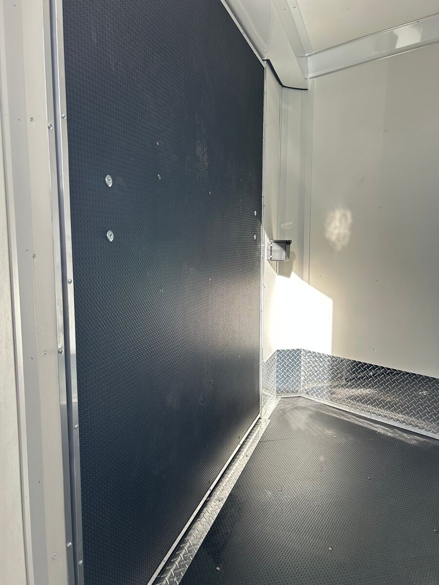The new Haulmark steel VENTURE mid-deck is your “can do” multi-purpose trailer for your powersport toys. Nothing compares to steel when it comes to strength and durability. Ramp doors, front & rear, means there’s nothing slowing you down. The mid-deck platform height is a hybrid design with drive over wheel boxes. Perfect for sleds, quads, ATV’s and motorcycles. 1-Piece Aluminum Roof 3/4" PlexCore High Performance Decking White Vinyl Sidewall Liner 24" ATP Stoneguard 15" Radial Tires Dexter Torflex Suspension Smooth Aluminum Fenderettes Steel Fold-Out Step Front Ramp Door with Spring Assist Rear Ramp Door with Spring Assist Recessed 5,000 lb. D-Rings with Backing Plates Flow-Thru Sidewall Vents 14" x 14" Non-Powered Roof Vent Rear ID Bar with Integrated Loading Light 16" OC Floor Crossmembers 16" OC Roof Bows 3-Year Limited Warranty .030 Aluminum Exterior - Bonded (Smooth Appearance) 36" Side Door w/ Flush Lock 12v Clear Lens LED Exterior Lighting 16" OC Tube Vertical Posts Silver Viper Aluminum Wheels 2,000 lb. Front Wind Tongue Jack 12" ATP Kickplate Mid-Deck Platform with Drive Over Wheel Boxes 6' V-Front with Polished Aluminum Nose