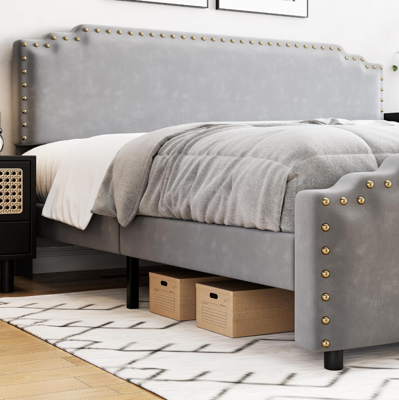 ZelleVelvet Bed Frame: Soft upholstered bed frame, a perfect blend of style and comfort for any bedroom. The upholstered headboard provides a cozy and inviting feel, ideal for relaxing and unwinding after a long day.