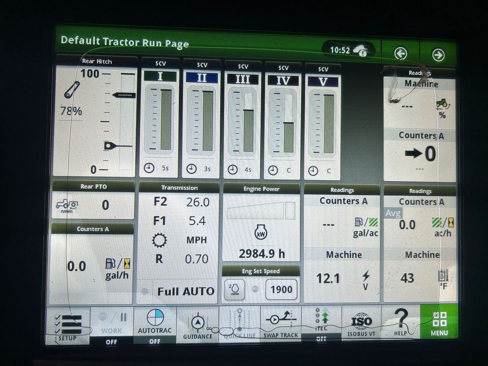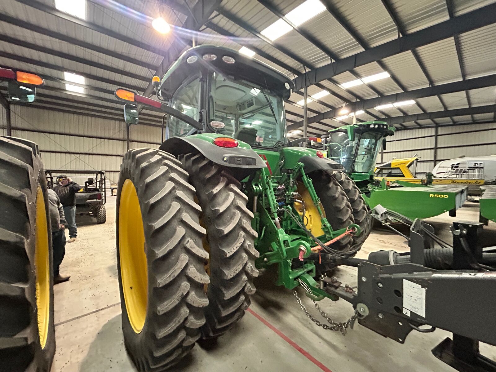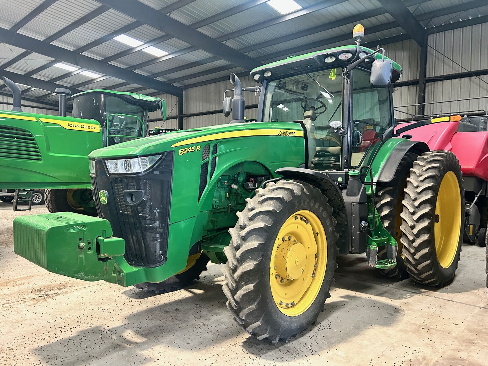 2016 John Deere 8245R, 2,985 hrs, 245 hp, 3 point hitch, pto, 5 rear hyd remotes, 380/90R54 rear dual tires, 380/80R38 front dual tires(front duals not shown). Overall in great condition, runs and drives as it should. Used as a baler tractor mostly and stored inside during winter months.