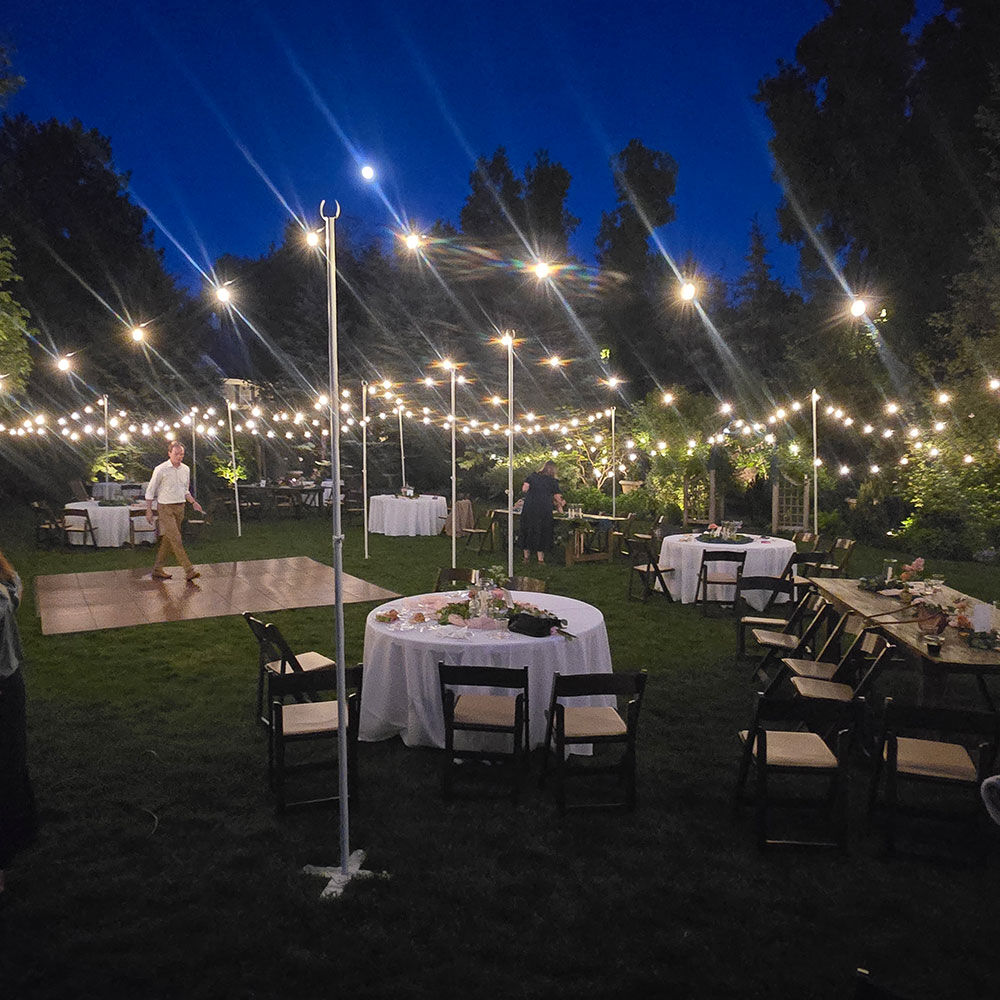 VenmoOur string lights are great for all types of events from weddings and receptions to company parties. The string lights can be used outdoors or indoors. The string light poles are great for all types of events to string lights outdoors around a yard or even indoors at a church. We have white and black string light poles that are sturdy and great to hang the lights.