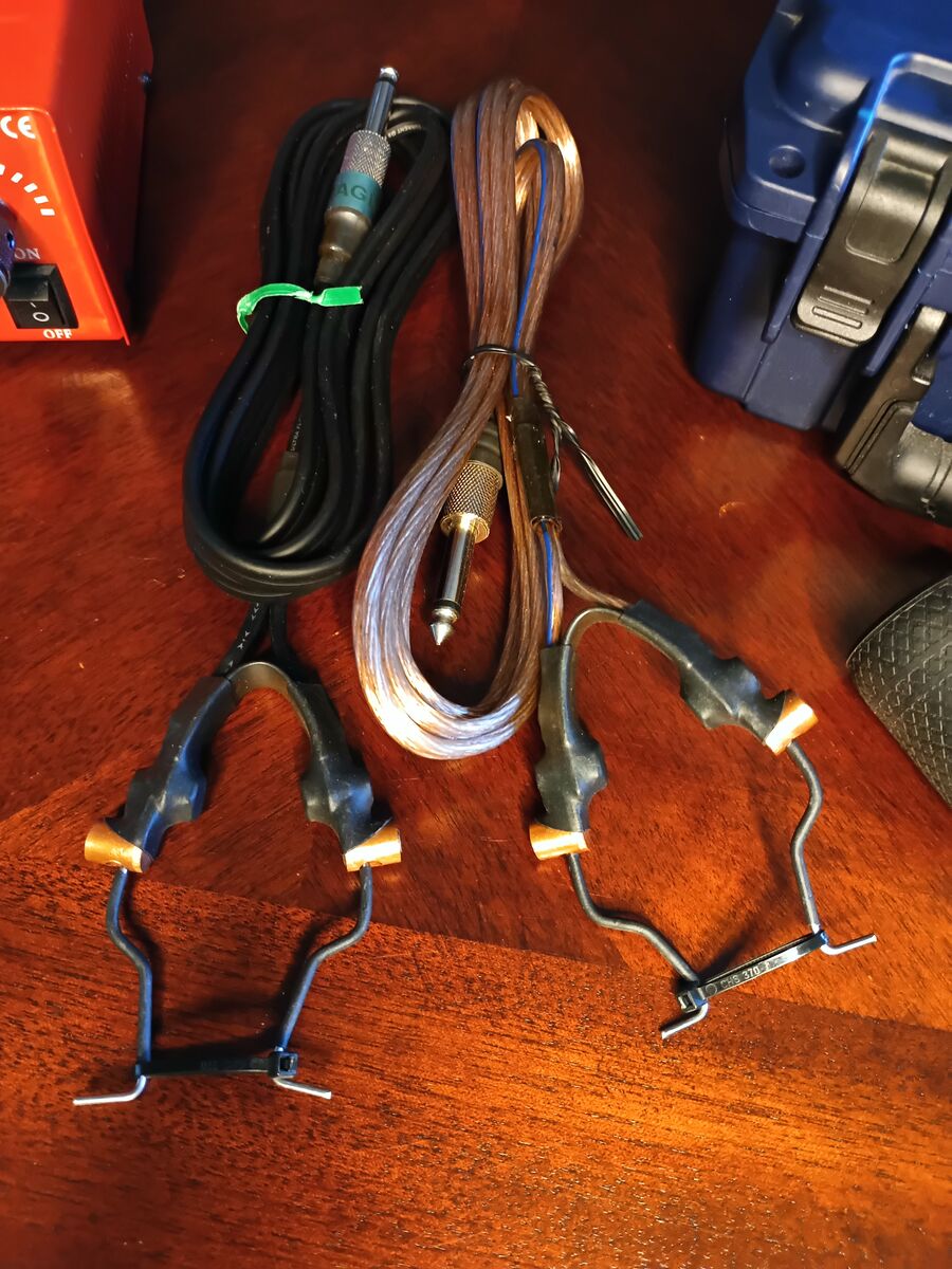 All equipment has seen very light use, -6 hours tattoo sessions, by a professional tattoo artist. Both machines have been tested and are working, have been sanitized and been stored in a cool, dry place and besides having no foot pedal to operate currently, are in like new condition!