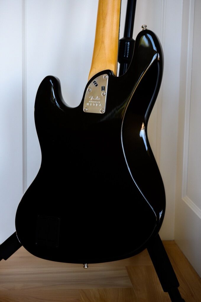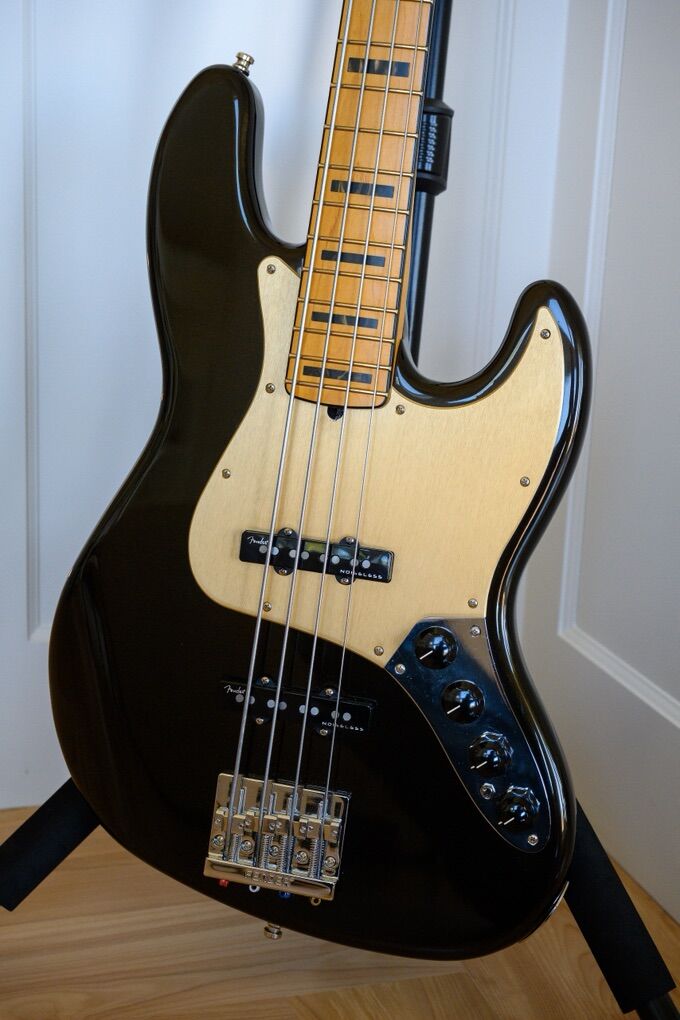 VenmoFender’s high-end jazz bass in excellent condition. Texas Tea color with Fender Noiseless pickups and can be played as an active or passive bass. Professionally set up with La Bella flats. Plays and sounds terrific! Comes in the original hard case, also in excellent condition. Thank you but no trades.