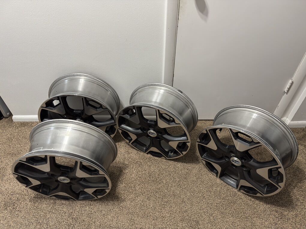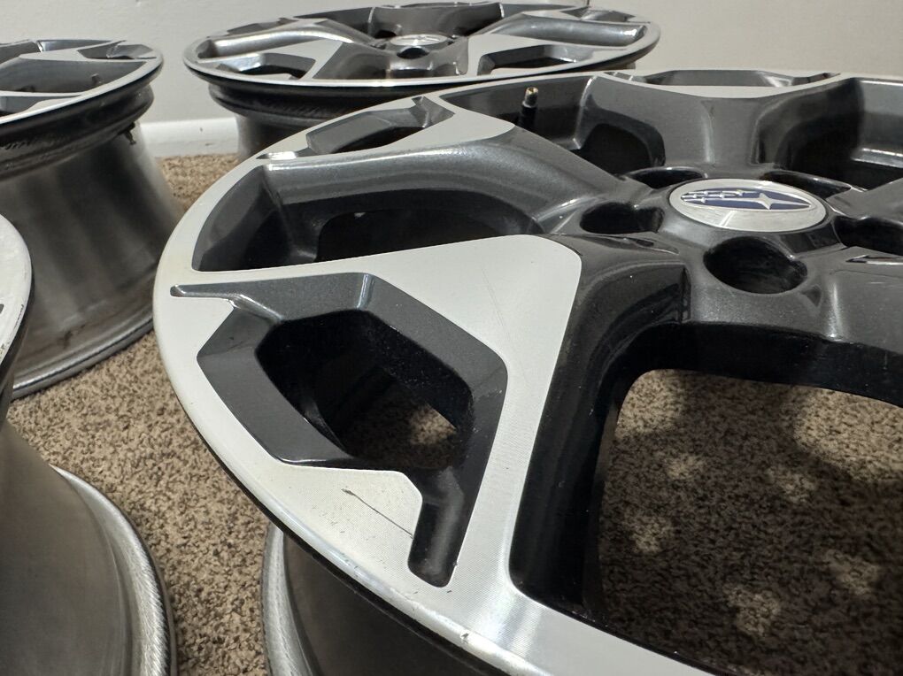 ZelleThis is a set of 4 OEM 2018 Subaru Crosstrek Rims. They were lightly used as an extra set for snow tires and garage kept when not in use.