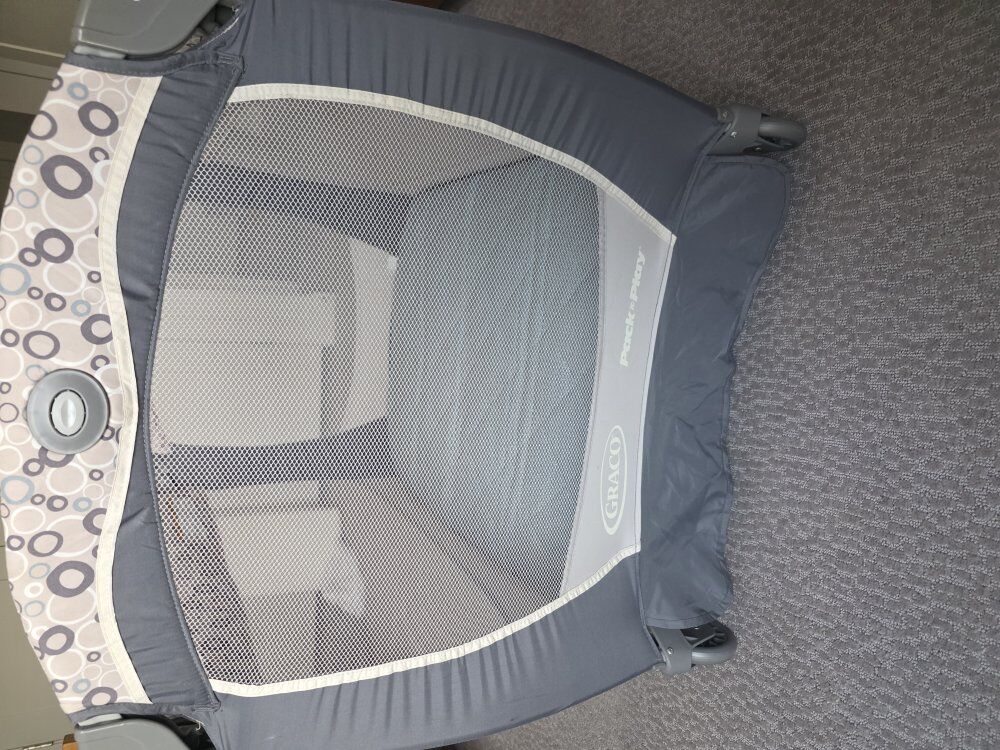 Get this gently used Graco Pack 'n Play for easy travel and home use! Sets Up in Seconds! Truly hassle-free. Includes a super soft 2-inch foam mattress with fitted sheets for ultimate comfort. The sturdy bottom board doubles as the convenient carrying case. Asking $50 cash obo. Perfect for Grandma's house or your next trip!